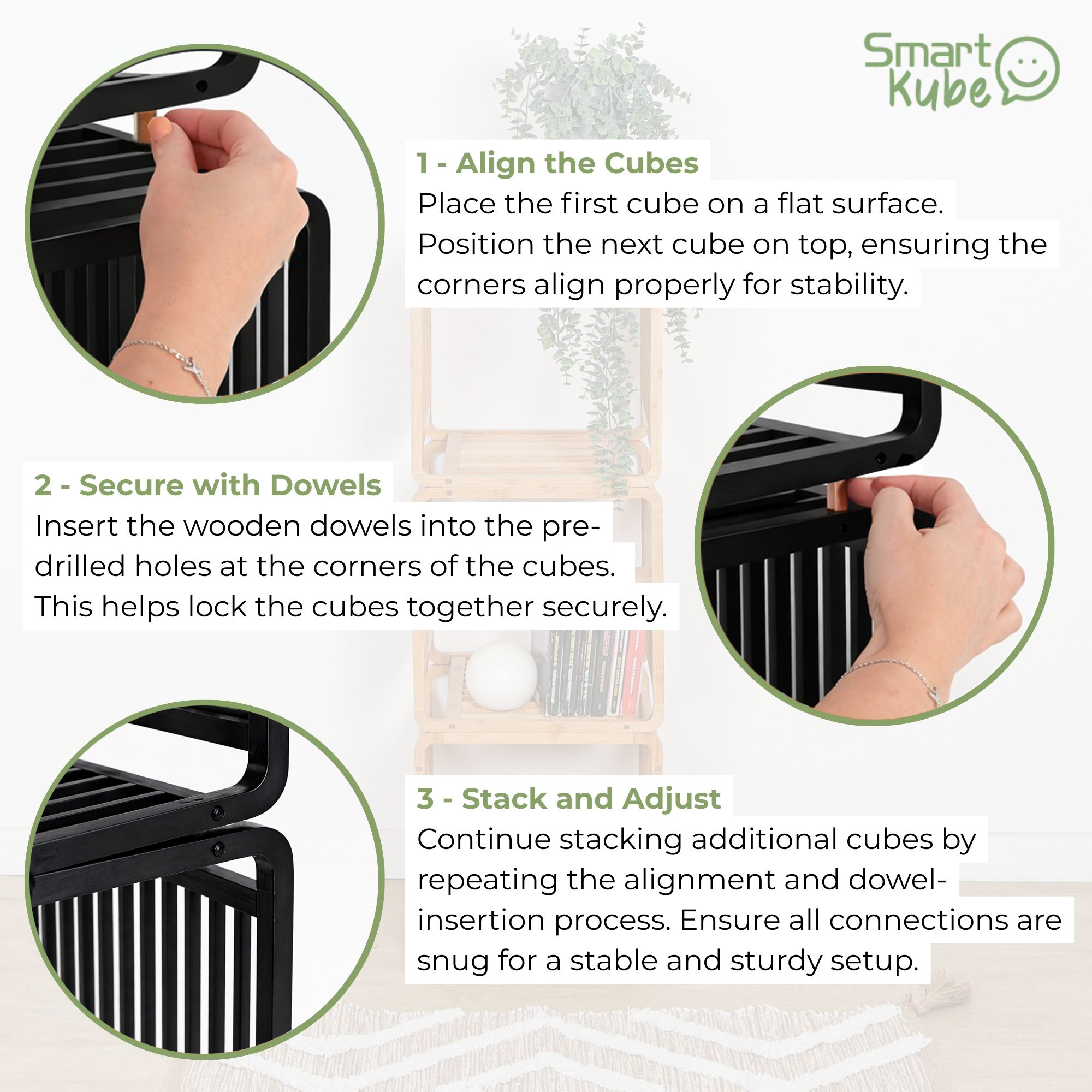 2 Smart Kube Black Bamboo Cube Storage, 13″ Stackable Shelf Organizer