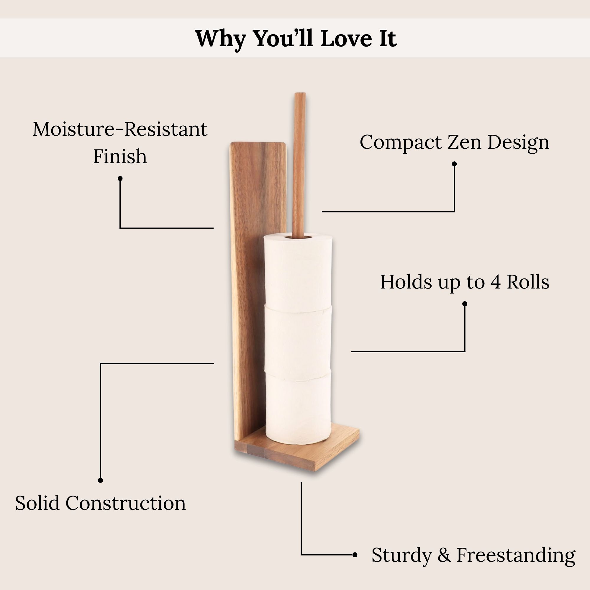 Upgrade your space with this Acacia Toilet Paper Stand, combining function, simplicity, and natural charm.