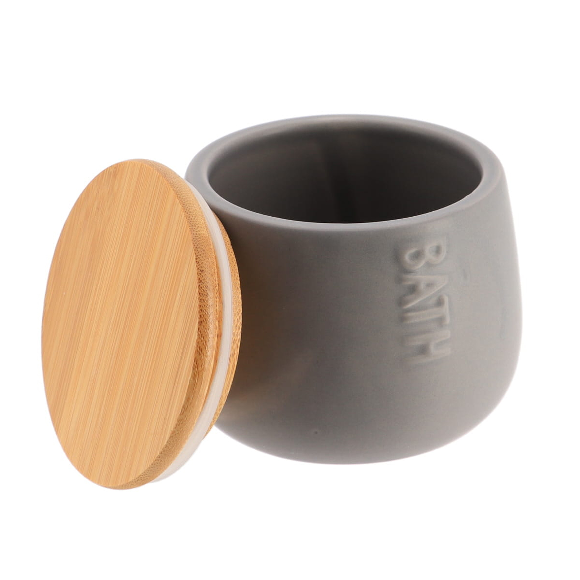 - DESIGNER ARTWORK: Enjoy the unique design of this cotton pads box holder Bath D, outlined with ‘Bath’ in soft focus writing on its side and the addition of a bamboo top which brings a spa atmosphere to your bathroom. Color white, black or grey available with a brown bamboo lid