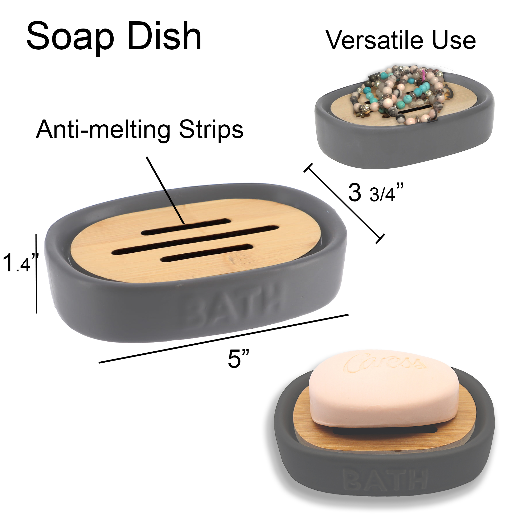 Bath D Soap Dish Cup Dispenser Grey and Bamboo Tray