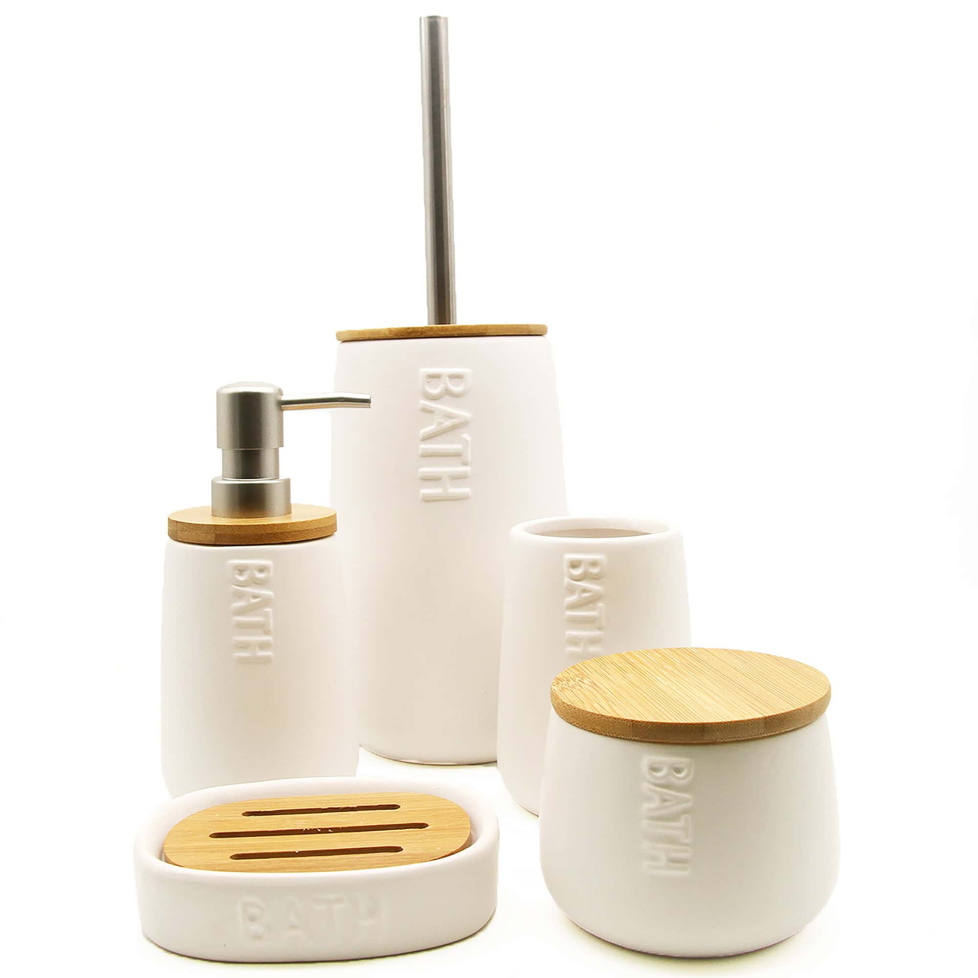 - MATCHING COLLECTION: Complete your decoration with other products of the same collection Bath D, like tumbler, soap dispenser, cotton box or toilet brush holder. 3 colors available: white, black or grey, with a brown bamboo tray