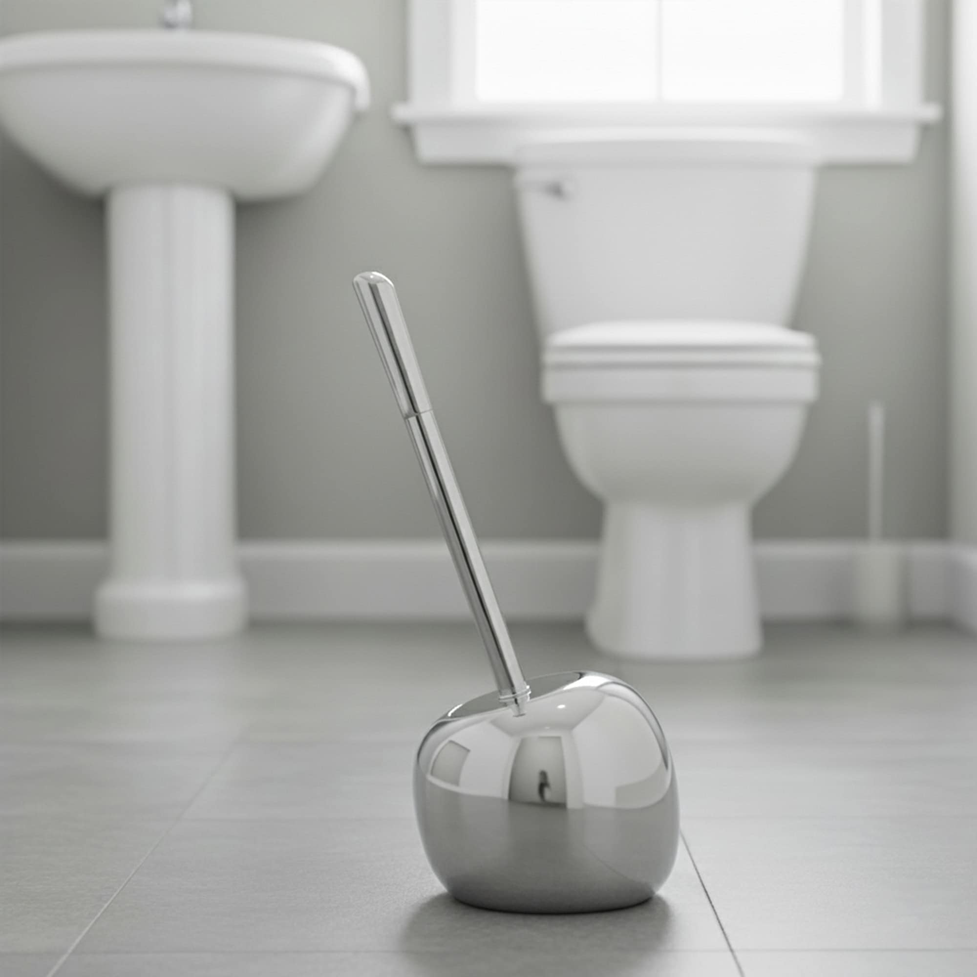 “Let’s face it, there’s nothing glamorous about a toilet brush…But there’s also no need for it to be an embarrassing eyesore. Keep your toilet bowl clean with our chrome toilet brush and holder set PISE .