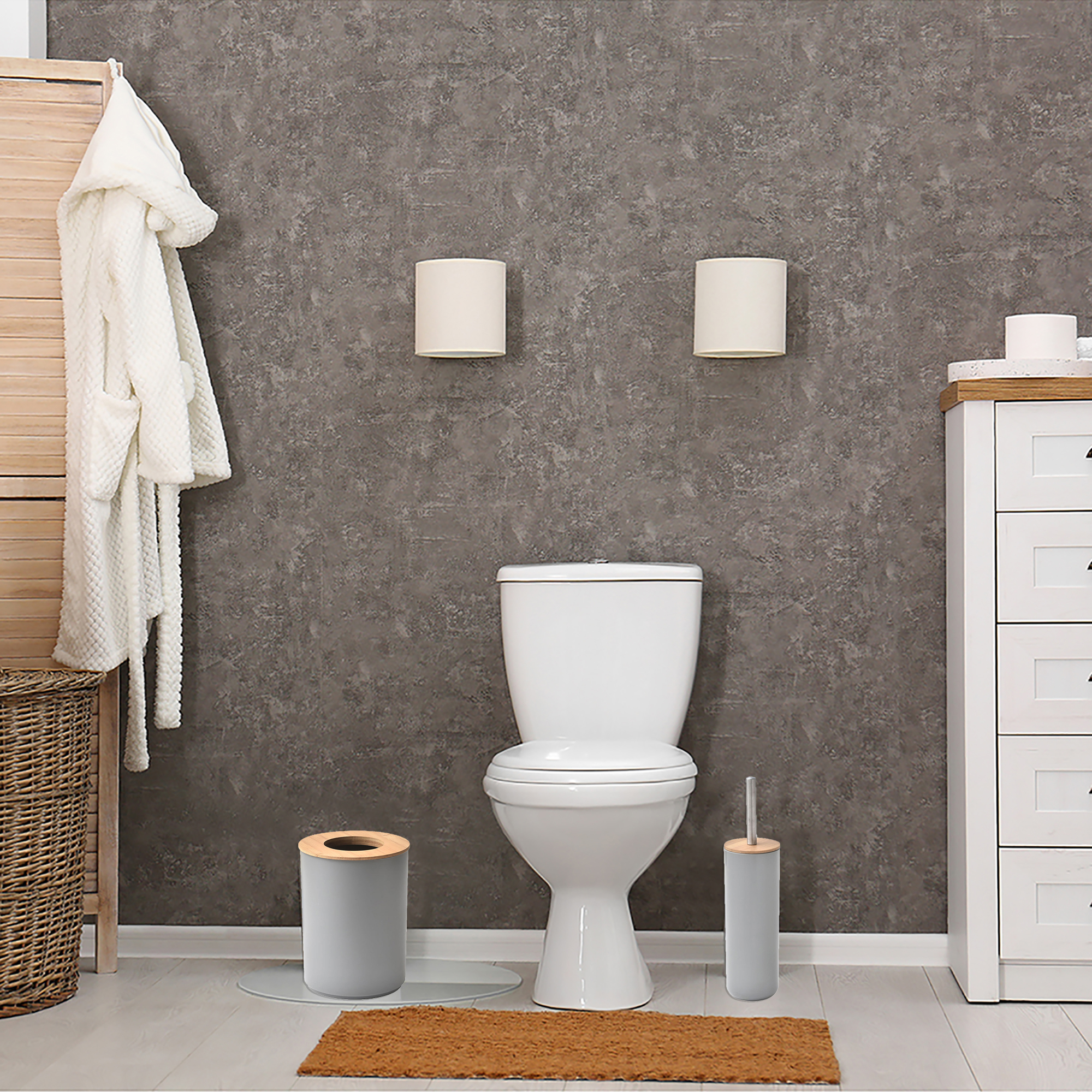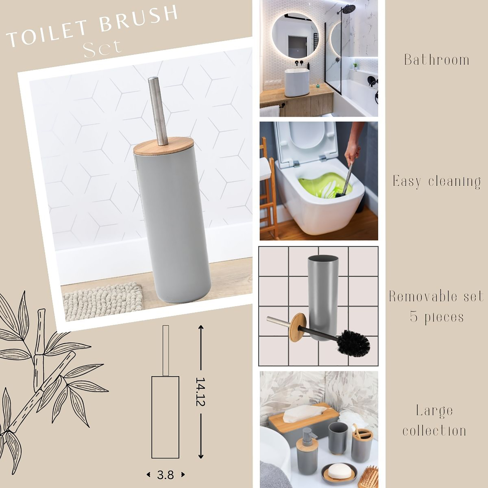 - Natural design: Upgrade your bathroom décor with our pearl gray toilet brush and holder set featuring a sleek bamboo top