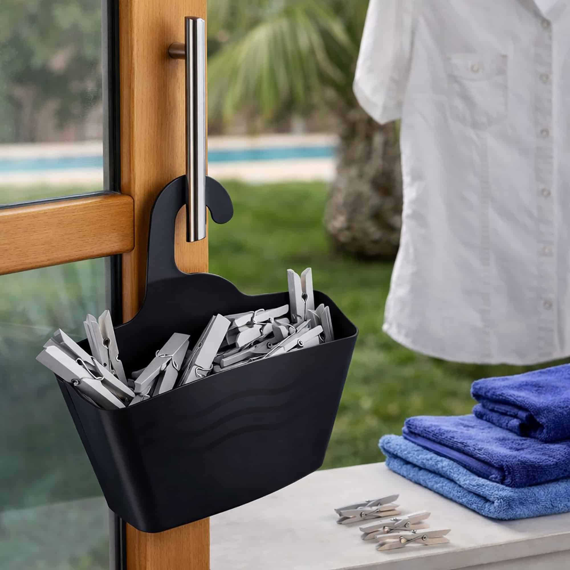 Finally, this clever little portable shelving unit can be used to organize other rooms in your home. Clearly, this Hanging Black Shower Caddy Organizer Plastic Basket is great to be used as a letter holder, a kitchen organizer or a laundry room organizer. Imported from France, Made in China