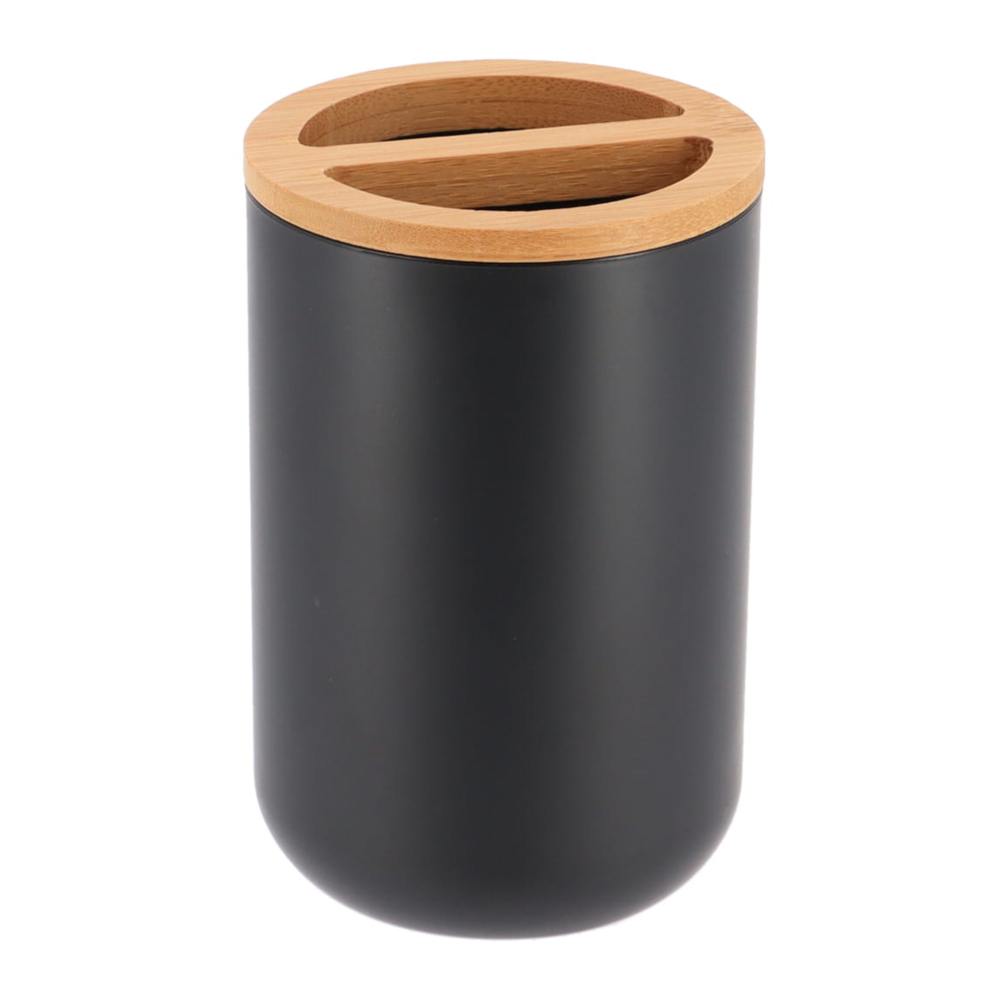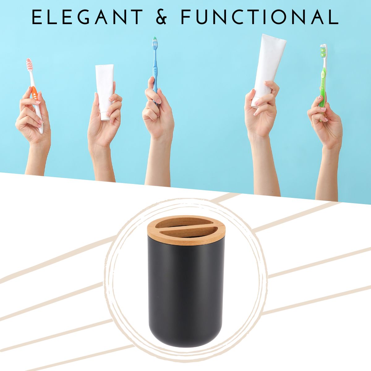 Black Toothpaste and Toothbrush Holder Padang with Bamboo Top – Chic Bathroom Organizer