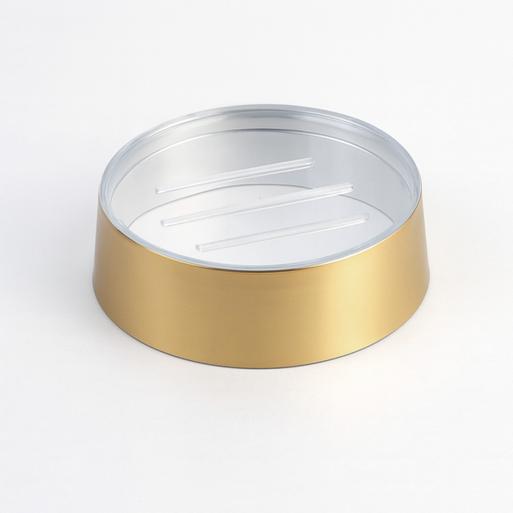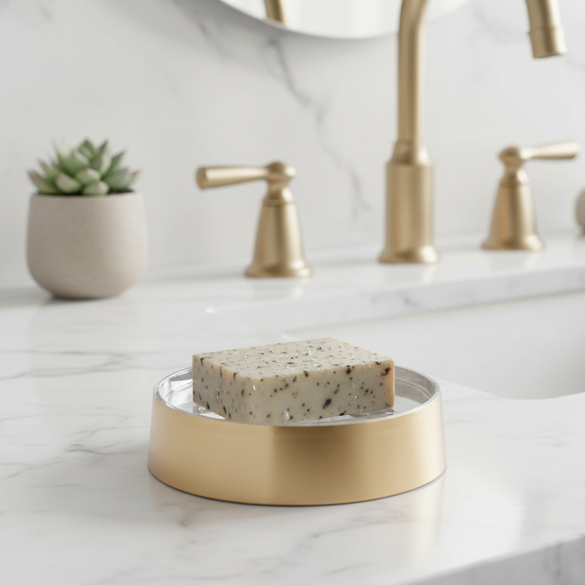 Soap dishes are containers designed to drain and keep your bar soap dry. Our brushed gold soap dish cup GOLDEN is the right accessory to keep your bath counter neat and tidy.