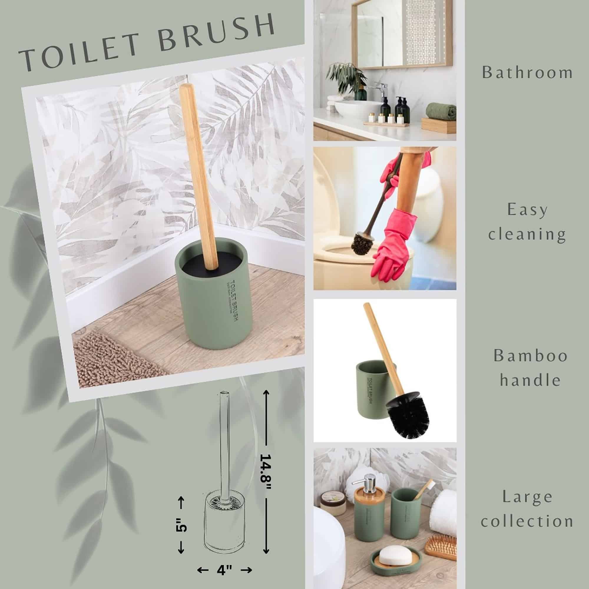 - ELEGANT DESIGN: Elevate your bathroom style with our green toilet bowl brush, an elegant blend of natural bamboo and matte finish