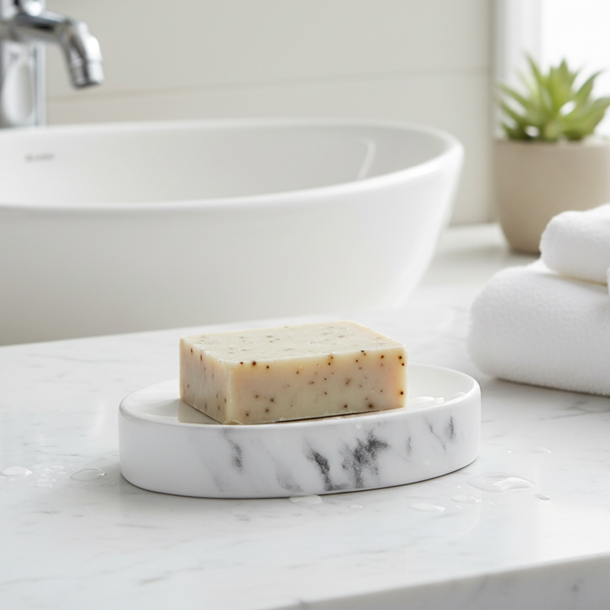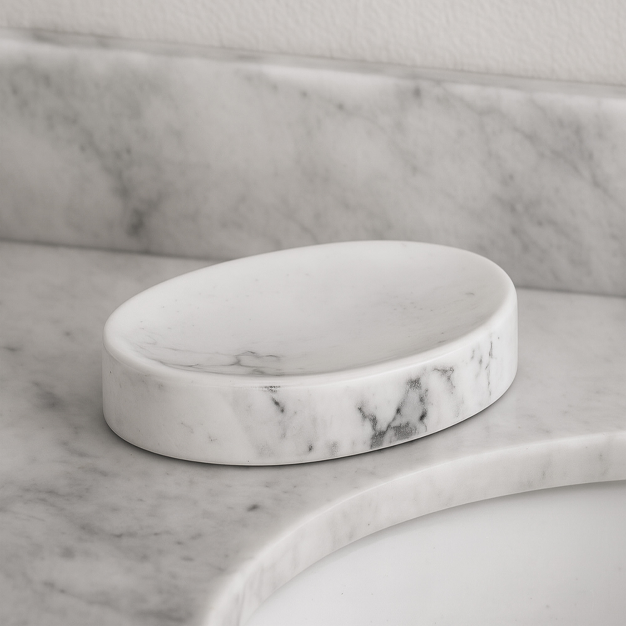 - PREMIUM QUALITY: This bath countertop soap dish is made of dolomite which is rust free, the cup is curved to avoid any slippage of the bar soap. This oval shape soap bar holder fits perfectly on any vanity counter top
