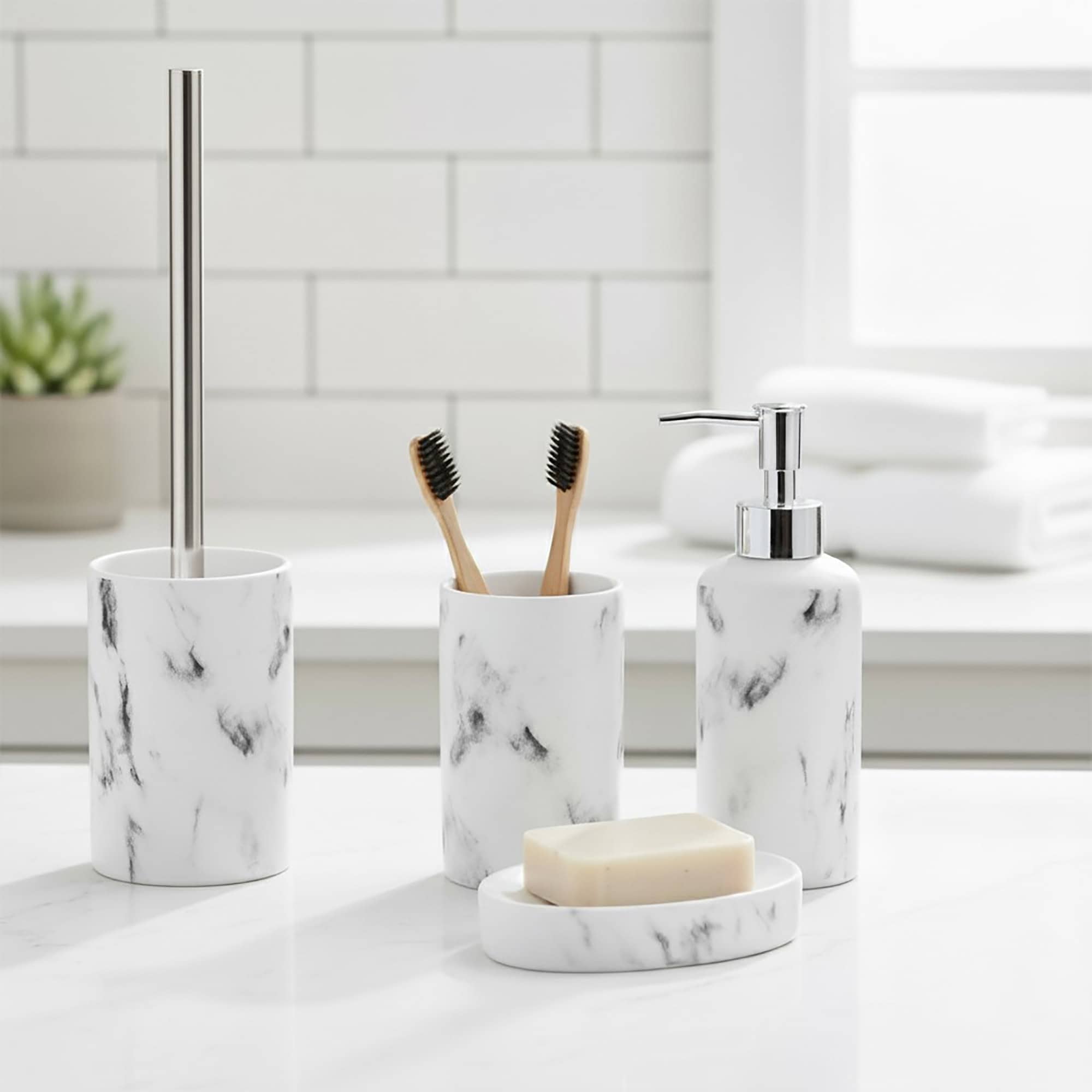 - MATCHING COLLECTION: Complete your bathroom decoration with this Marble Effect collection, featuring a tumbler, a soap dispenser or a soap dish cup