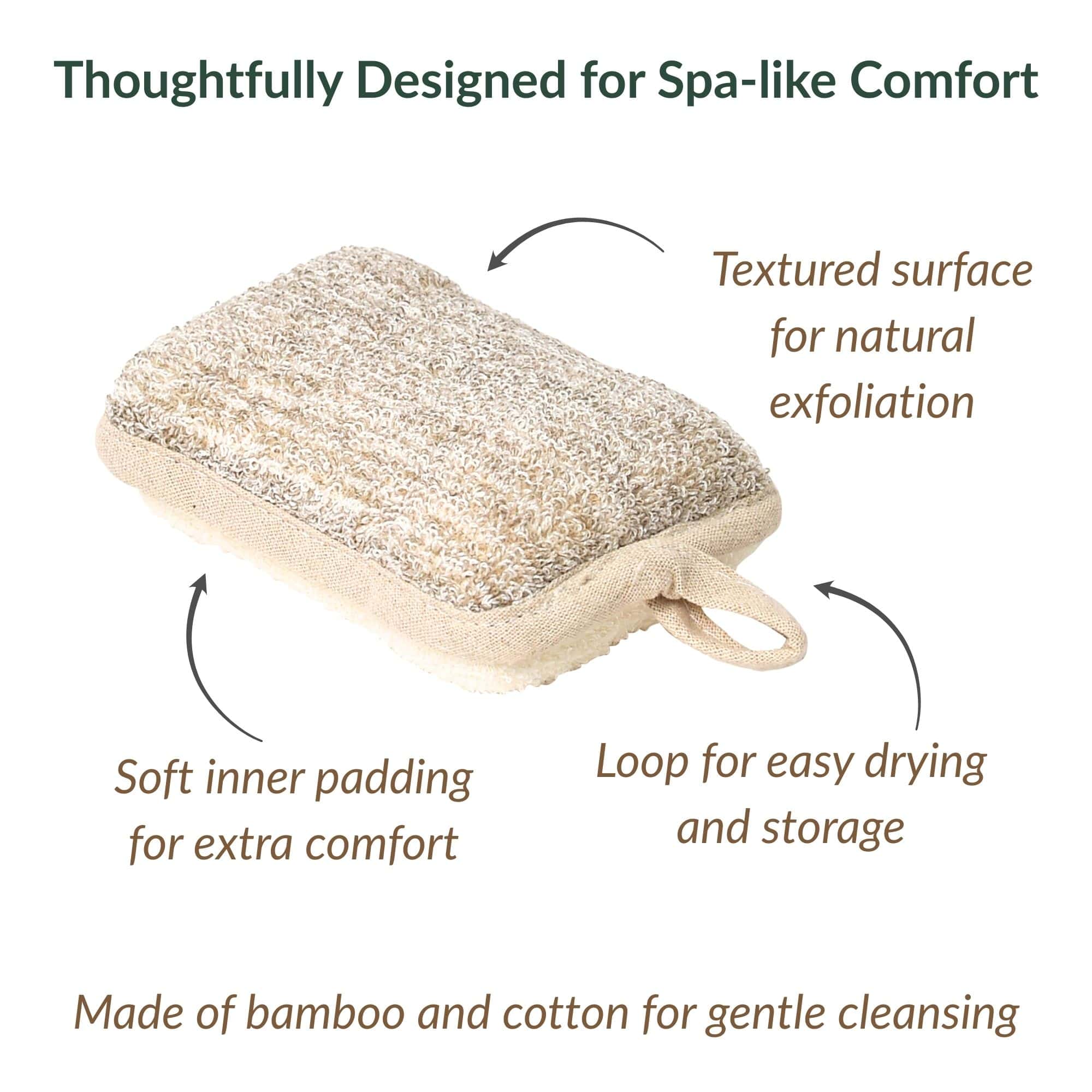 Cream/Taupe Small Exfoliating Bath Sponge – Natural Bamboo & Cotton