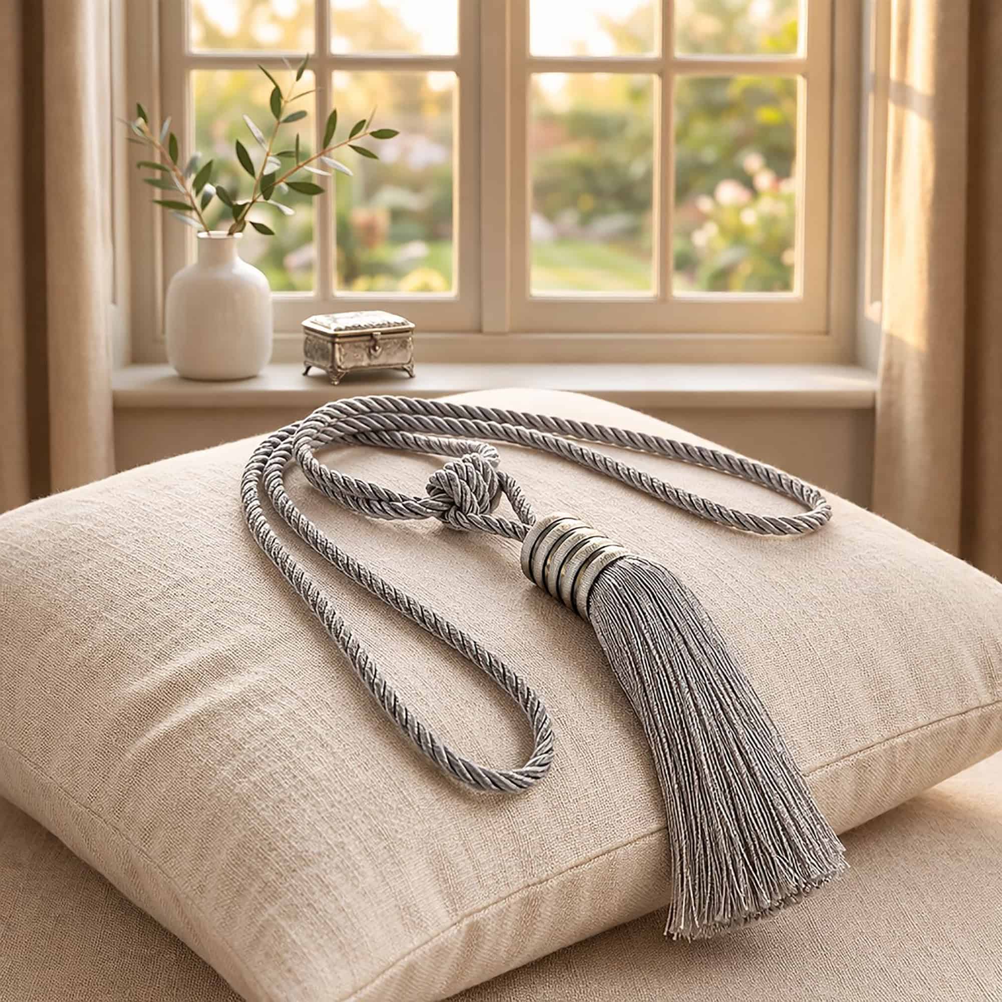 Decorative Curtain Tieback With Tassel – Silver Mist
