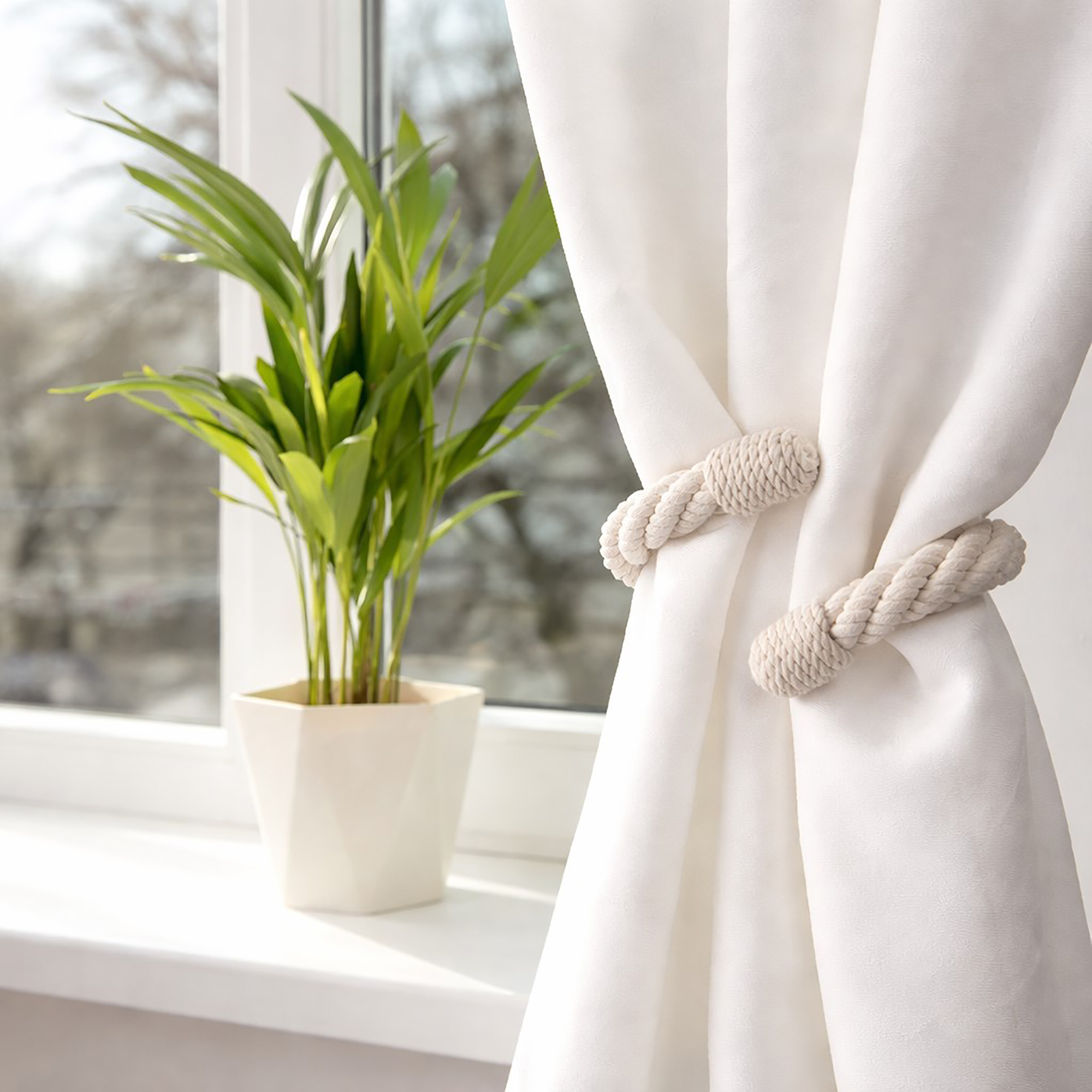 Elegant Rope Curtain Tie Back – Decorative Holdback for Drapes and Curtains – Ecru