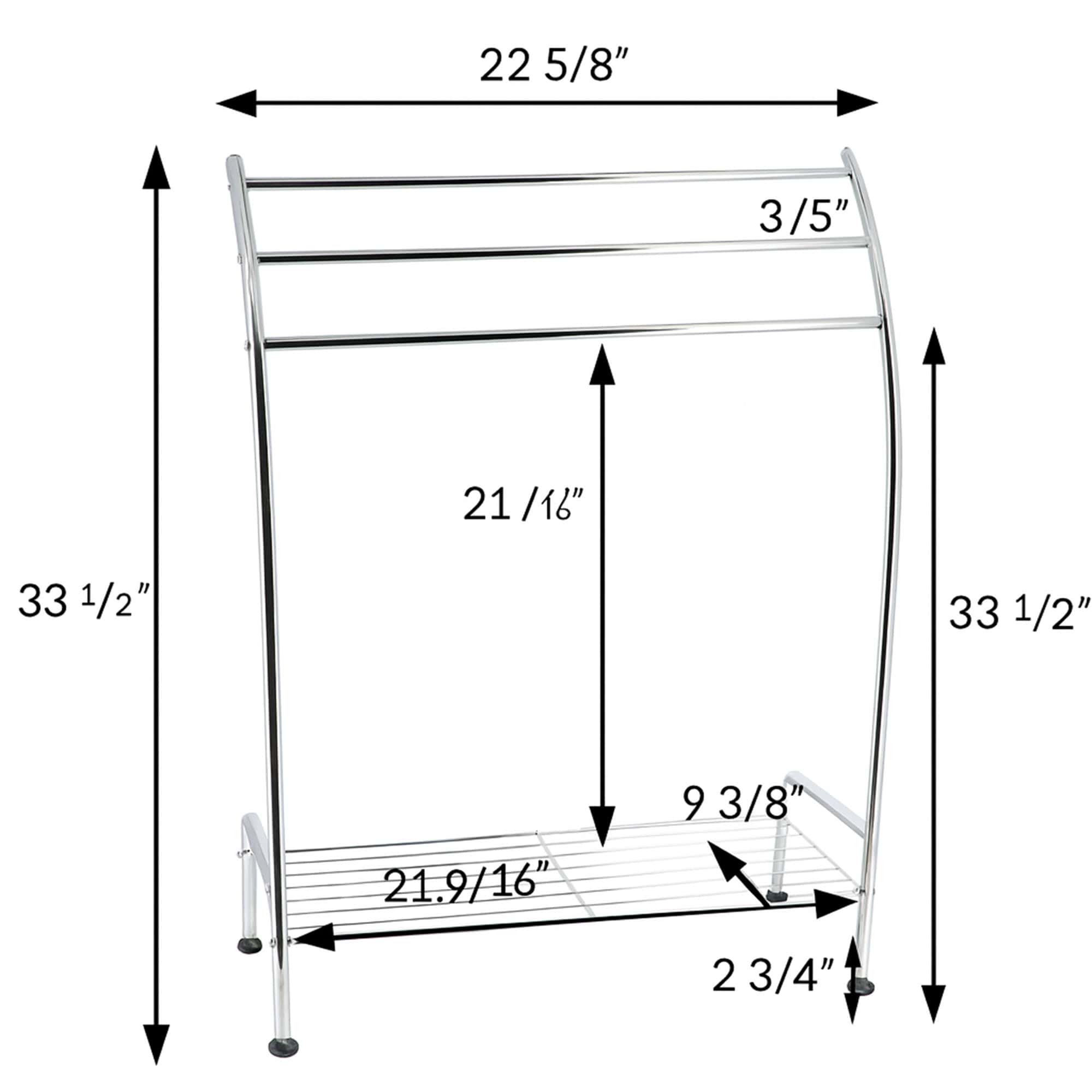 - 3 TOWELS HOLDER: This freestanding towel holder features three chrome plated finish metal bars to keep your favorite towels neatly displayed. One bottom wired shelf of 21.9″L x 9.8″W adds perfect storage space for towels and essentials, sleepers…