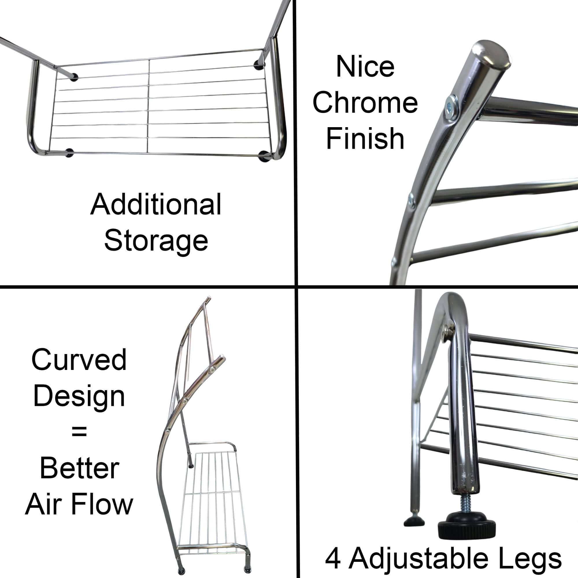 - STURDY & STABLE: This towel organizer features 4 adjustable legs to provides stability and security on uneven floors. Lightweight, it could be easily moved around, and the weight of the towels will keep the towel holder safe and prevent any tipping