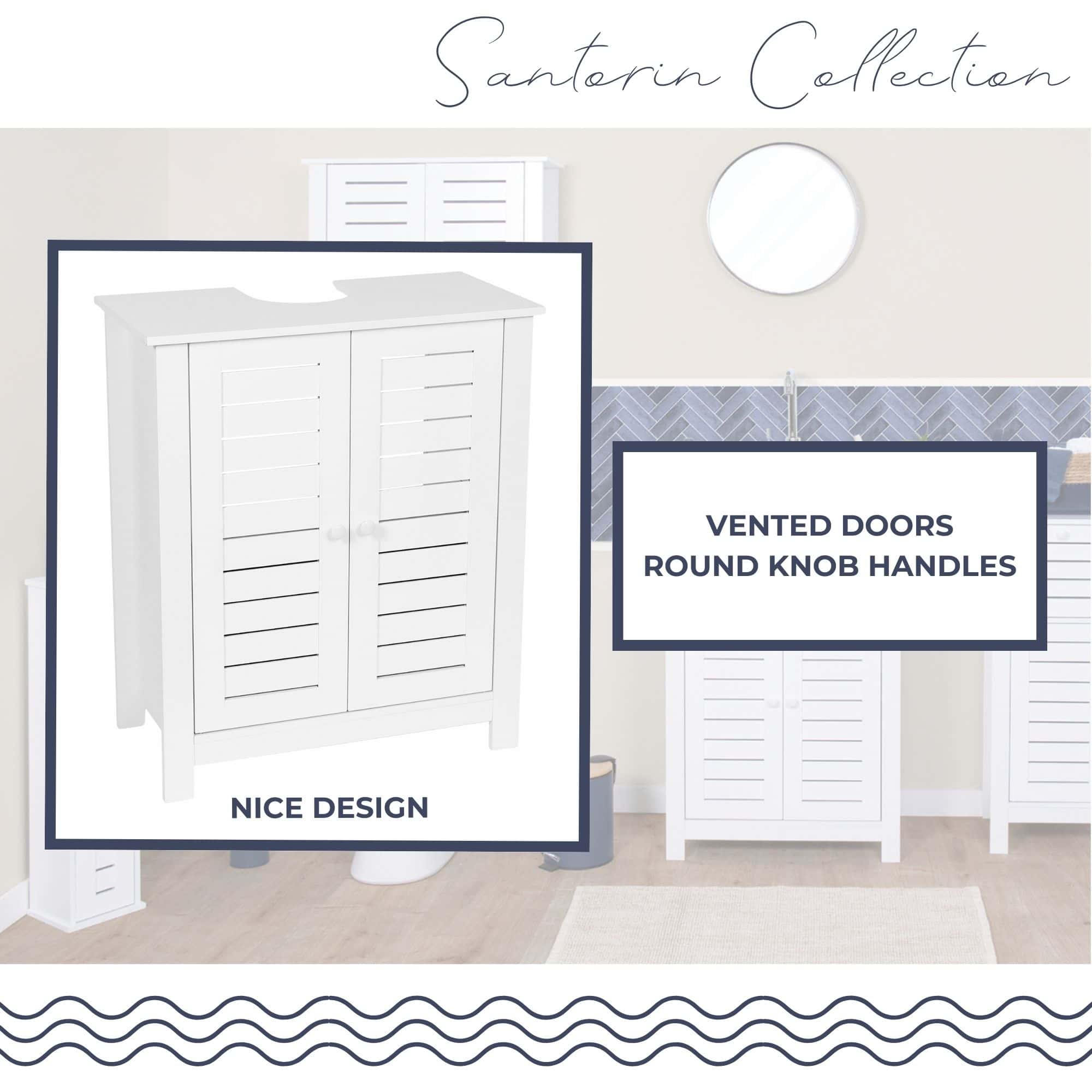 White Bathroom Vanity, Under Sink Cabinet with U-Shaped Cut-Out, Double Vented Doors, Santorin Collection