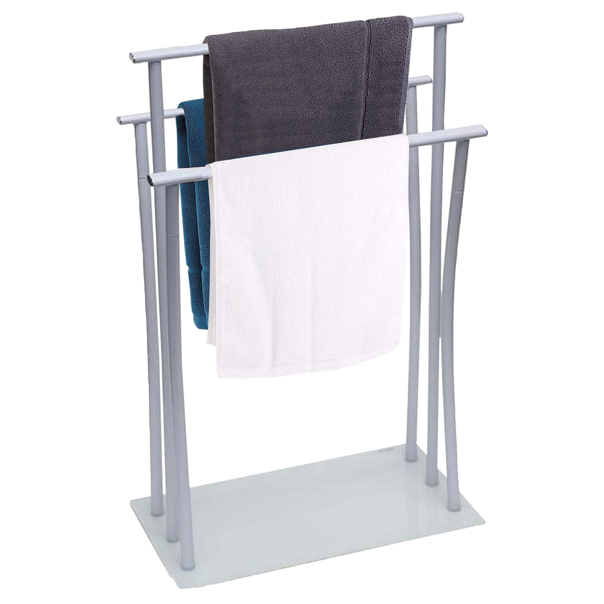 - 3 TOWELS HOLDER: This freestanding towel holder features three white coated finish metal bars to keep your favorite towels neatly displayed. Tiered and flared design offers great airflow for faster drying, no more damp towels