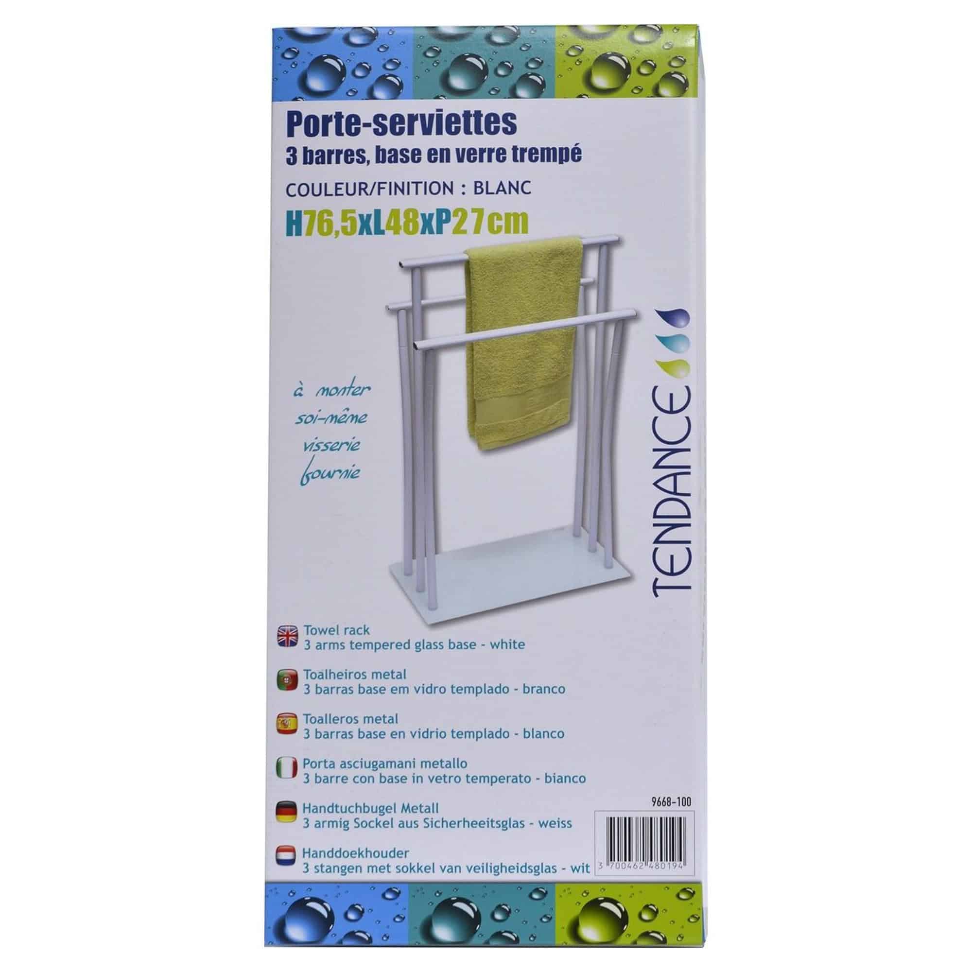 Freestanding Towel Rack Three Bars Tempered White Glass Base