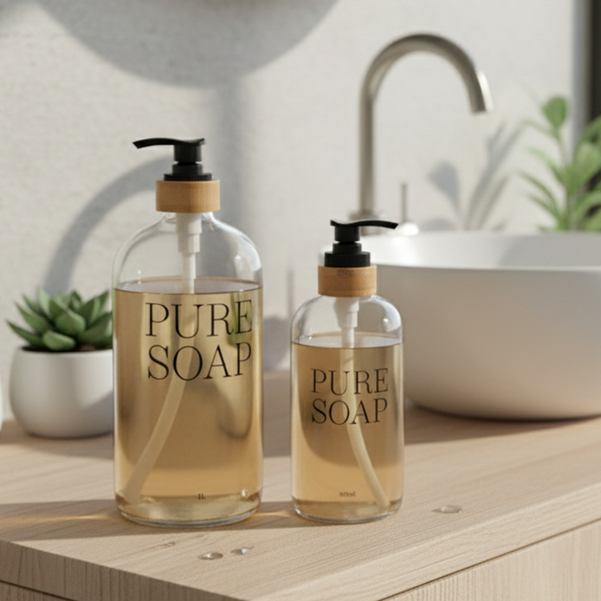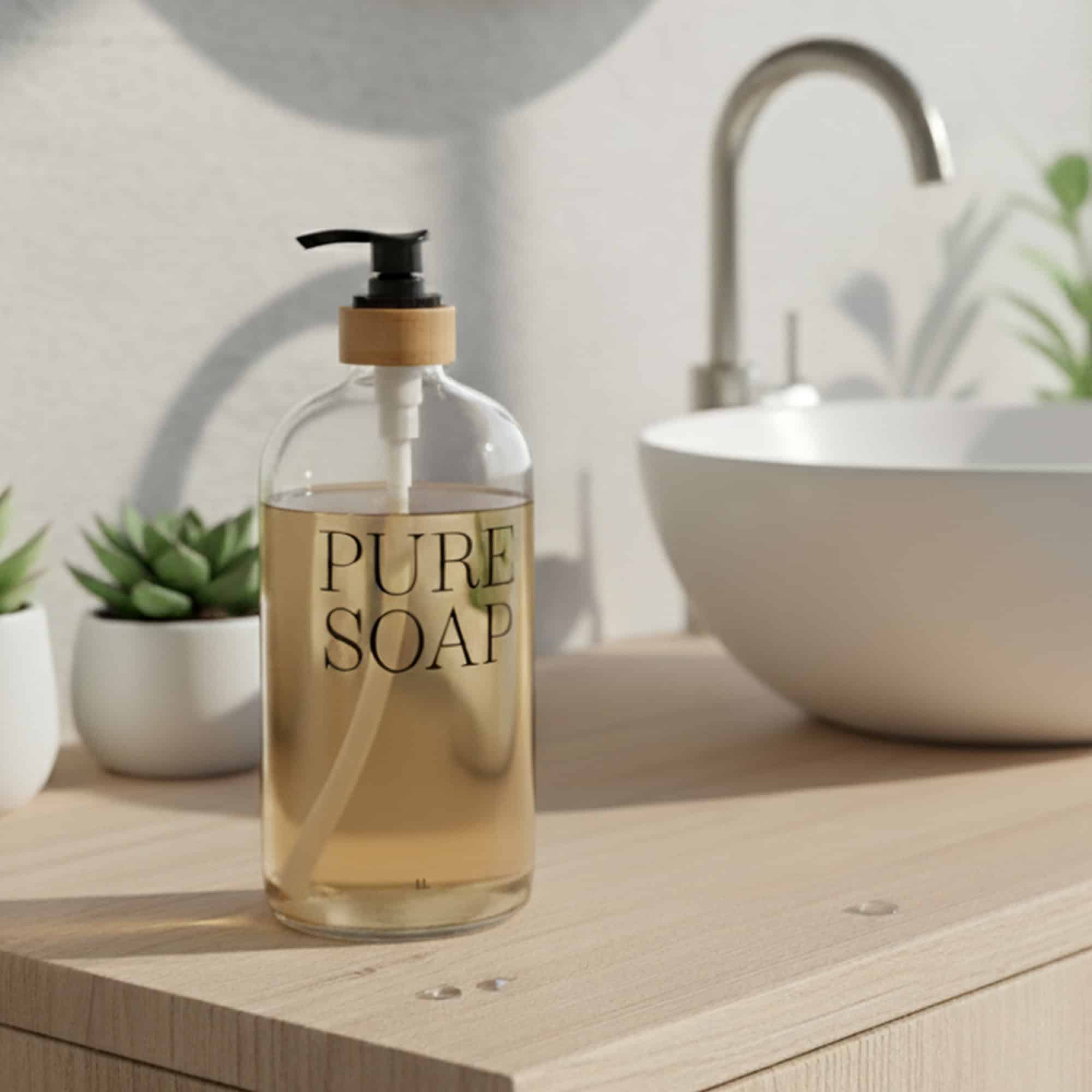 - NATURAL DESIGN: With its rounded curves, its “PURE SOAP” stamp and its glass and bamboo mix, this elegant lotion dispenser will adapt to all interior styles