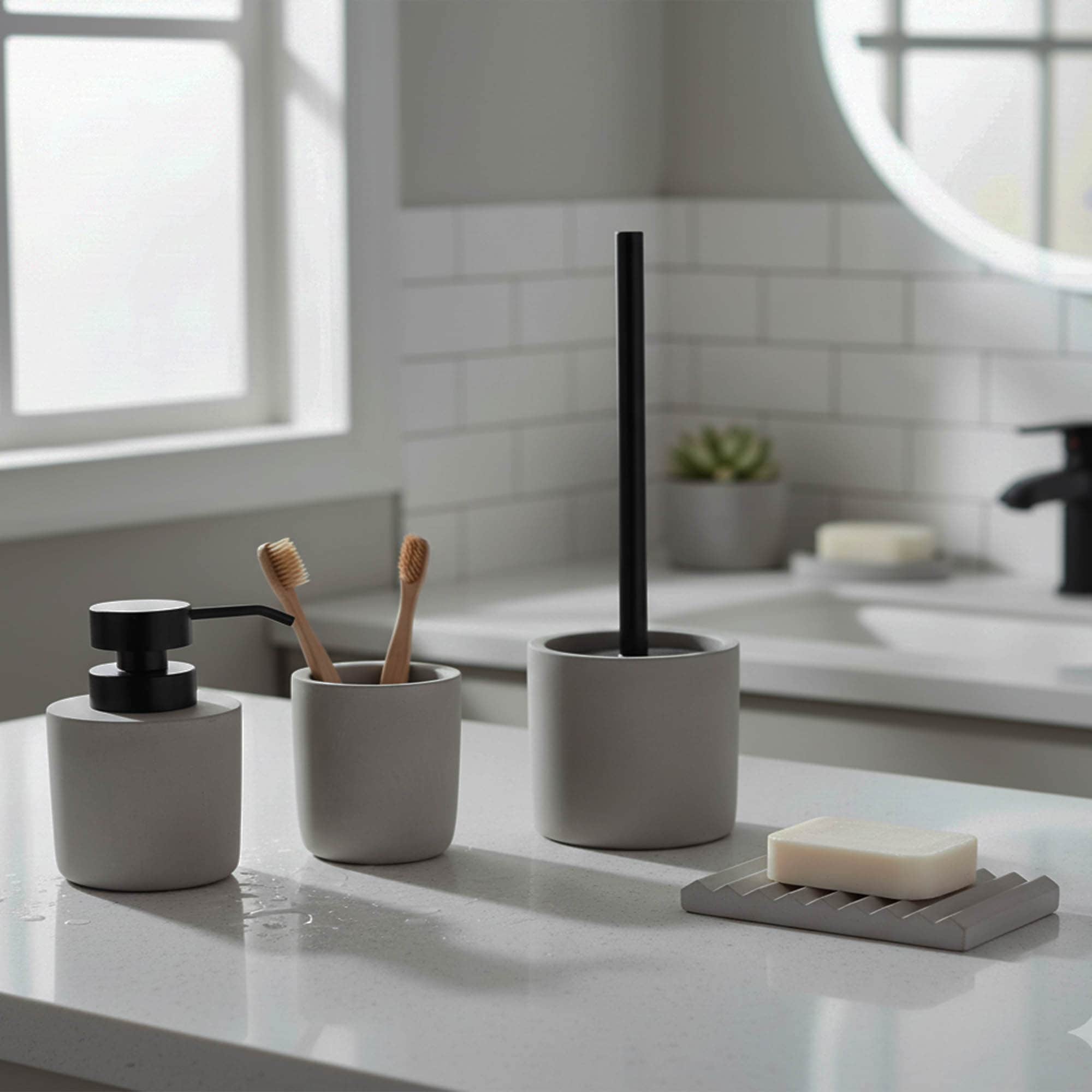 Brighten up your home with our Gray Cement Bathroom Soap Holder.