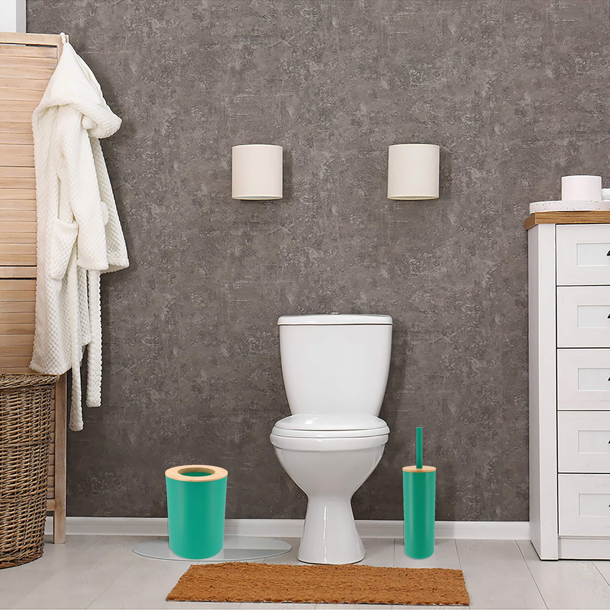 - Natural design: Enhance your bathroom with our fresh green trash can featuring an open bamboo lid for easy use and a touch of natural beauty