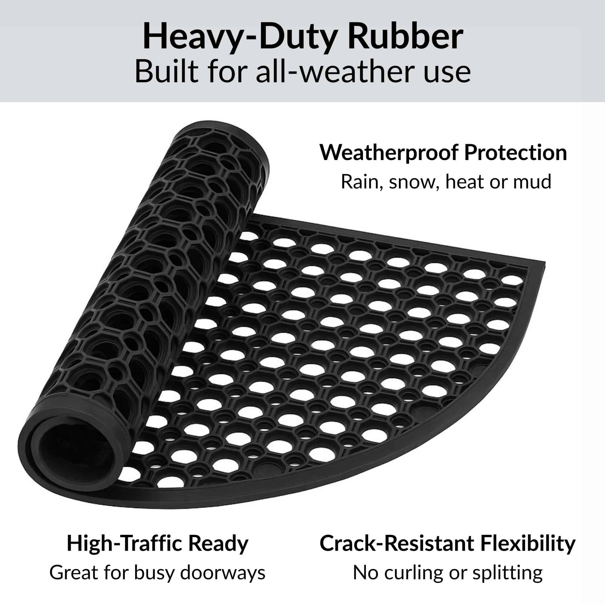 Protect your home entrance from dirt and outdoor mess with this Heavy-Duty Rubber Half Circle Door Mat.