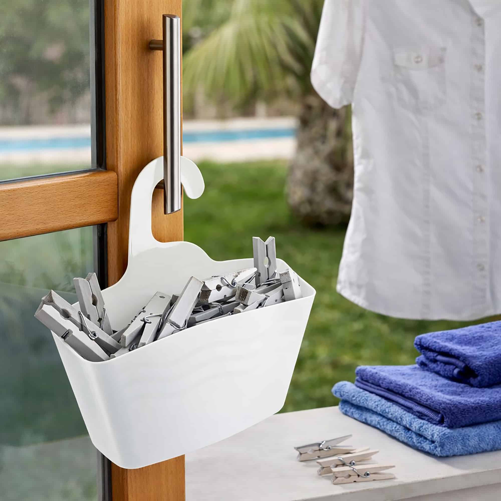 Finally, this clever little portable shelving unit can be used to organize other rooms in your home. Clearly, this Hanging White Shower Caddy Organizer Plastic Basket is great to be used as a letter holder, a kitchen organizer or a laundry room organizer. Imported from France, Made in China