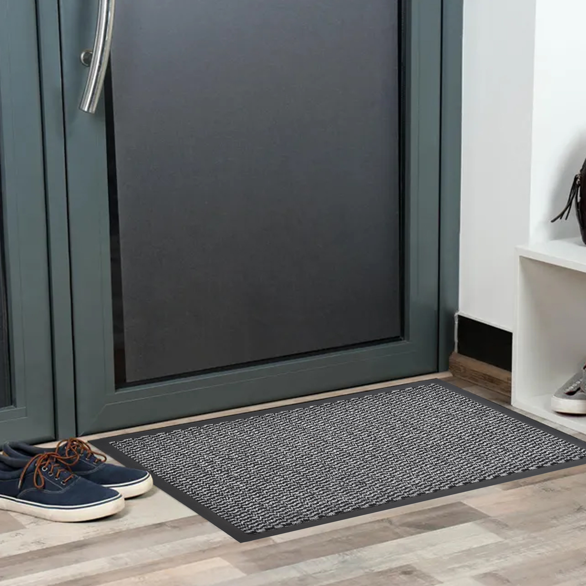 Heavy-Duty Gray Door Mat with Non-Slip Backing – 32″ x 24″, Low-Profile for Doorways, Dirt Trapper