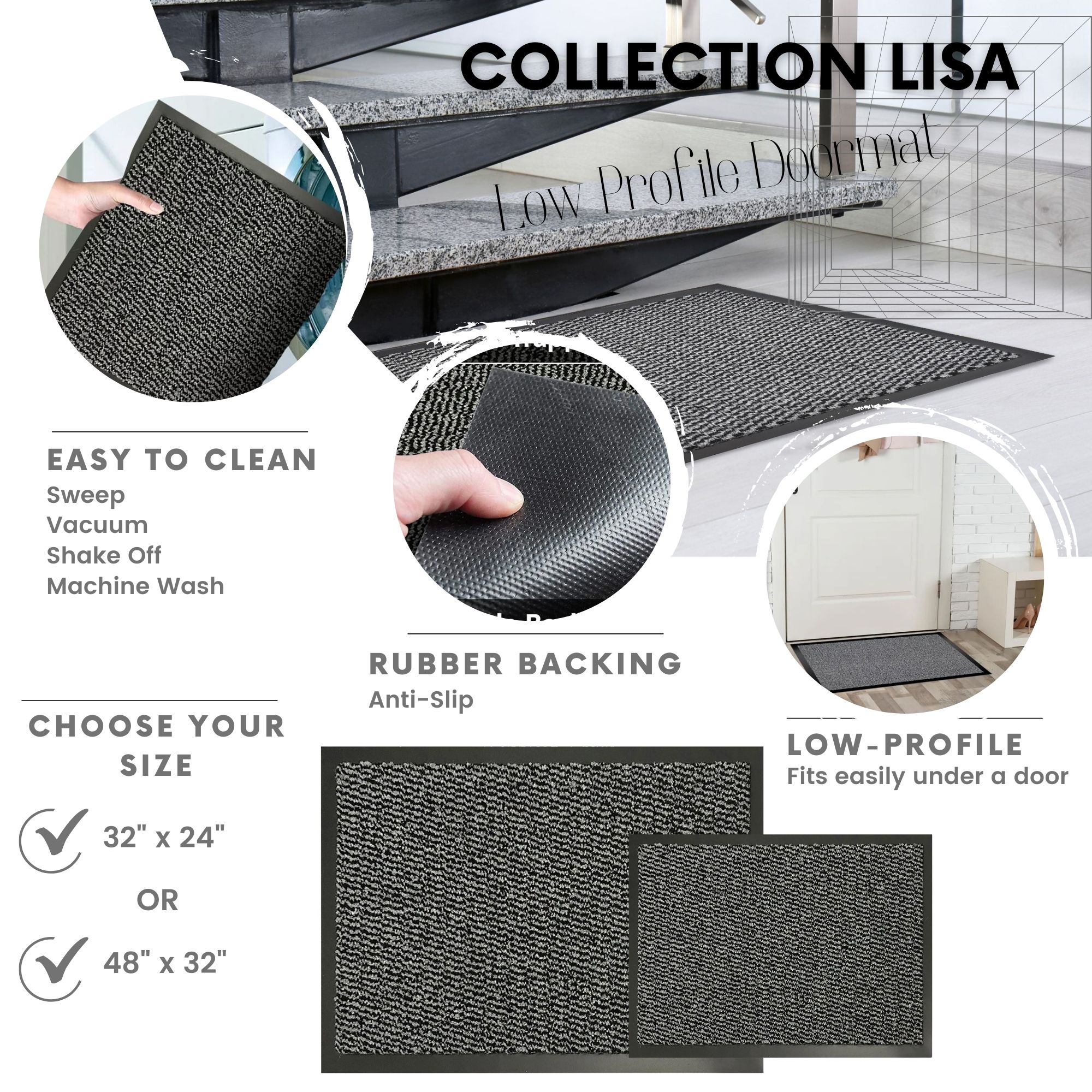 - Dirt and Moisture Trapping: Keeps floors clean by capturing dirt and moisture.