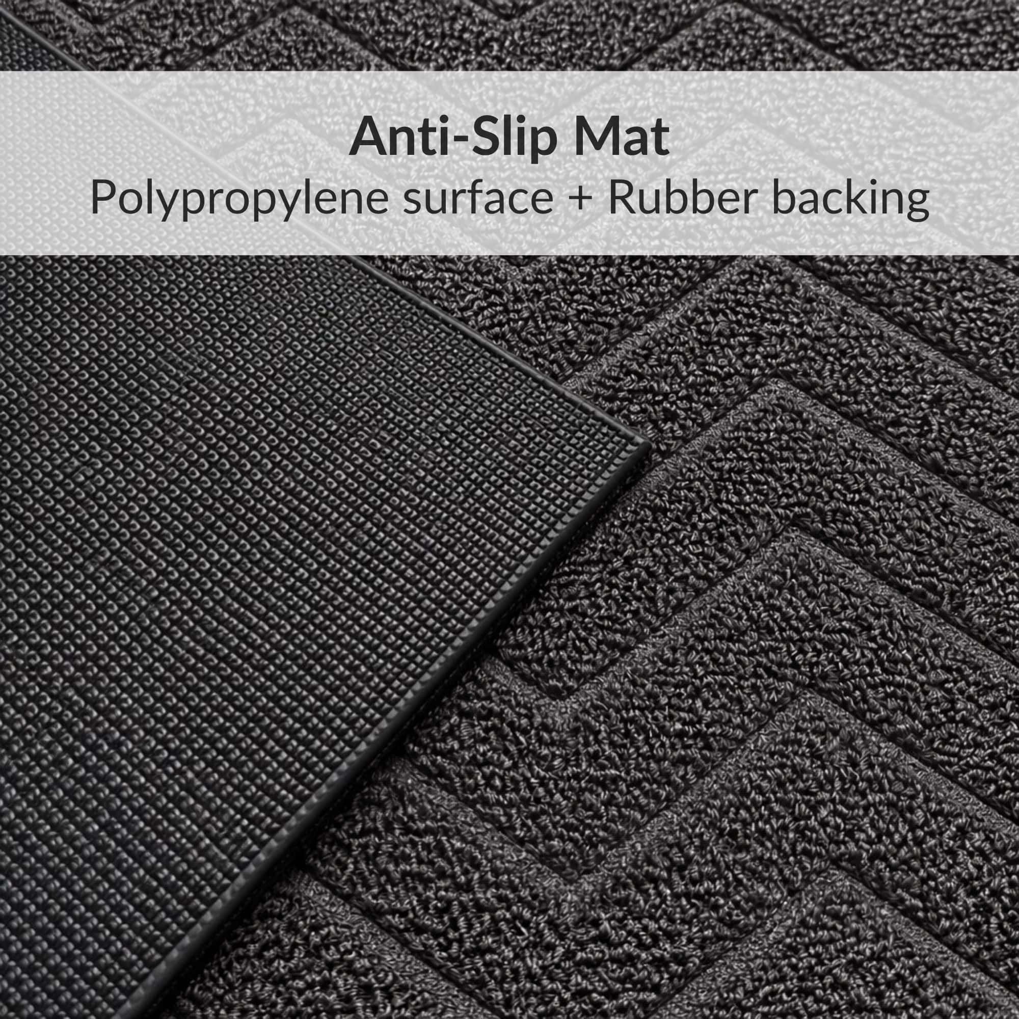First, this front door runner is designed to cover more step space at the threshold. 17.7 x 47.2 inches (45 x 120 cm) fits well in door areas, hallways and transition zones in covered spaces. Next, the polypropylene surface helps capture moisture and everyday dirt from shoes. Then, the textured chevron design supports a quick wipe-off step while adding subtle pattern without visual clutter. After that, the rubber backing helps limit shifting on common indoor surfaces such as tile, wood, laminate, vinyl and more; for best results, place the entryway mat on a clean, dry floor and smooth it flat after unrolling.
