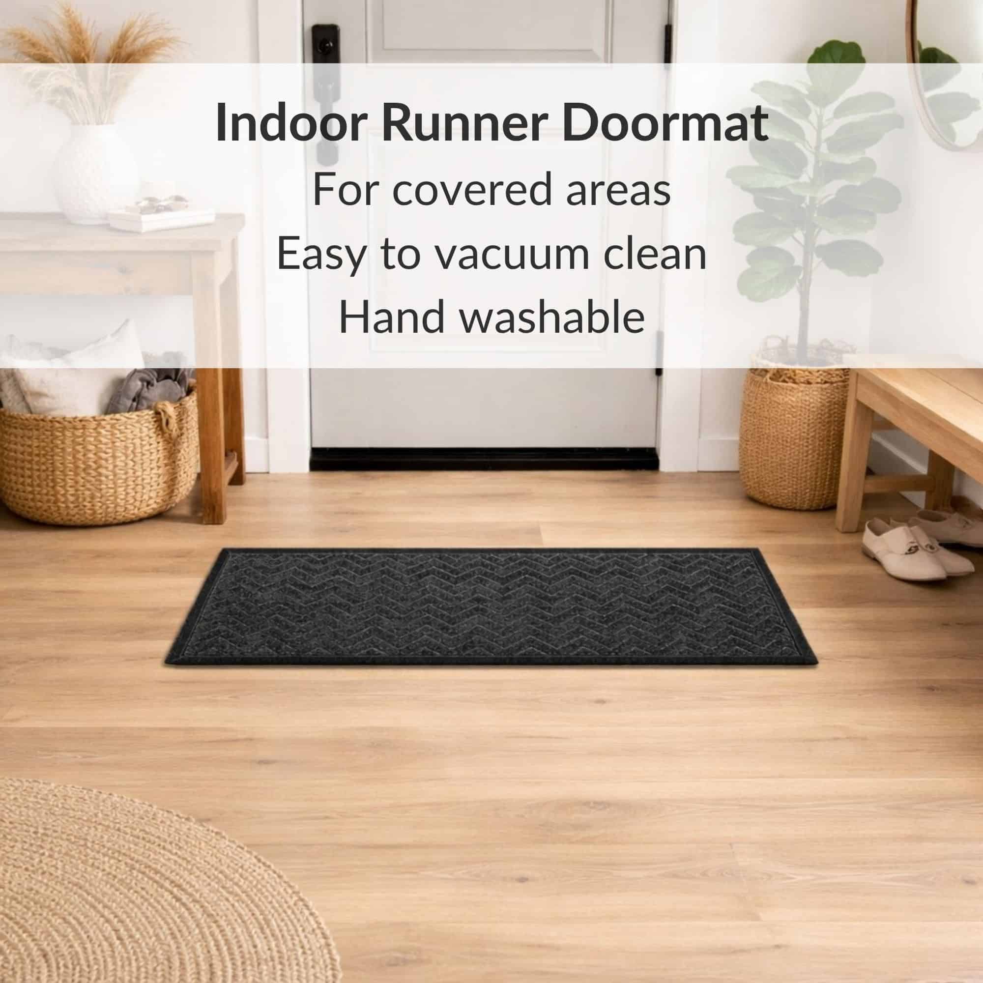 Bring a cleaner look to your entry with this Dark Gray Entryway Runner in a chevron pattern.