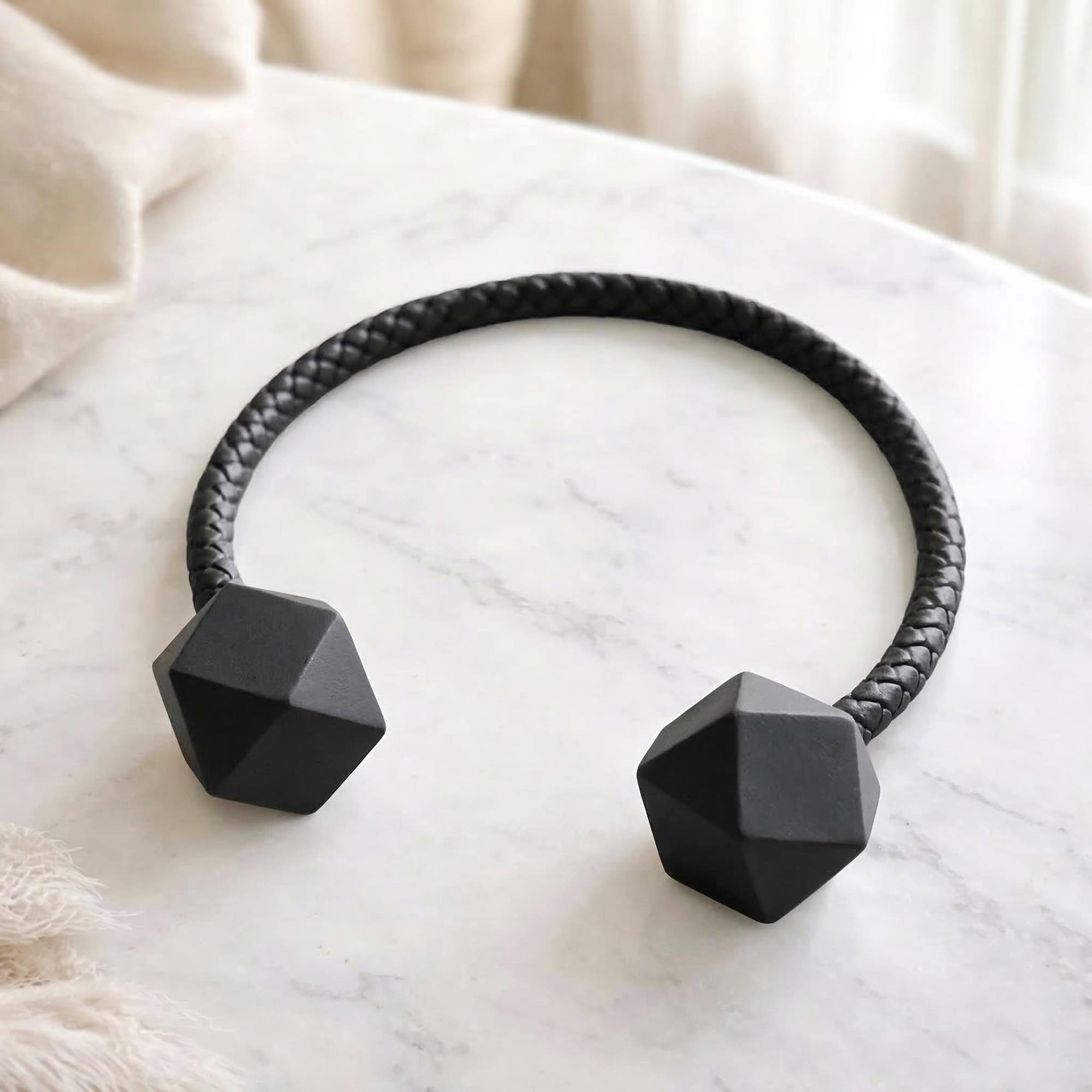 Intense Black Tieback – Flexible Design with Wooden Tips and Faux Leather Covering – Upgrade Your Home Decor