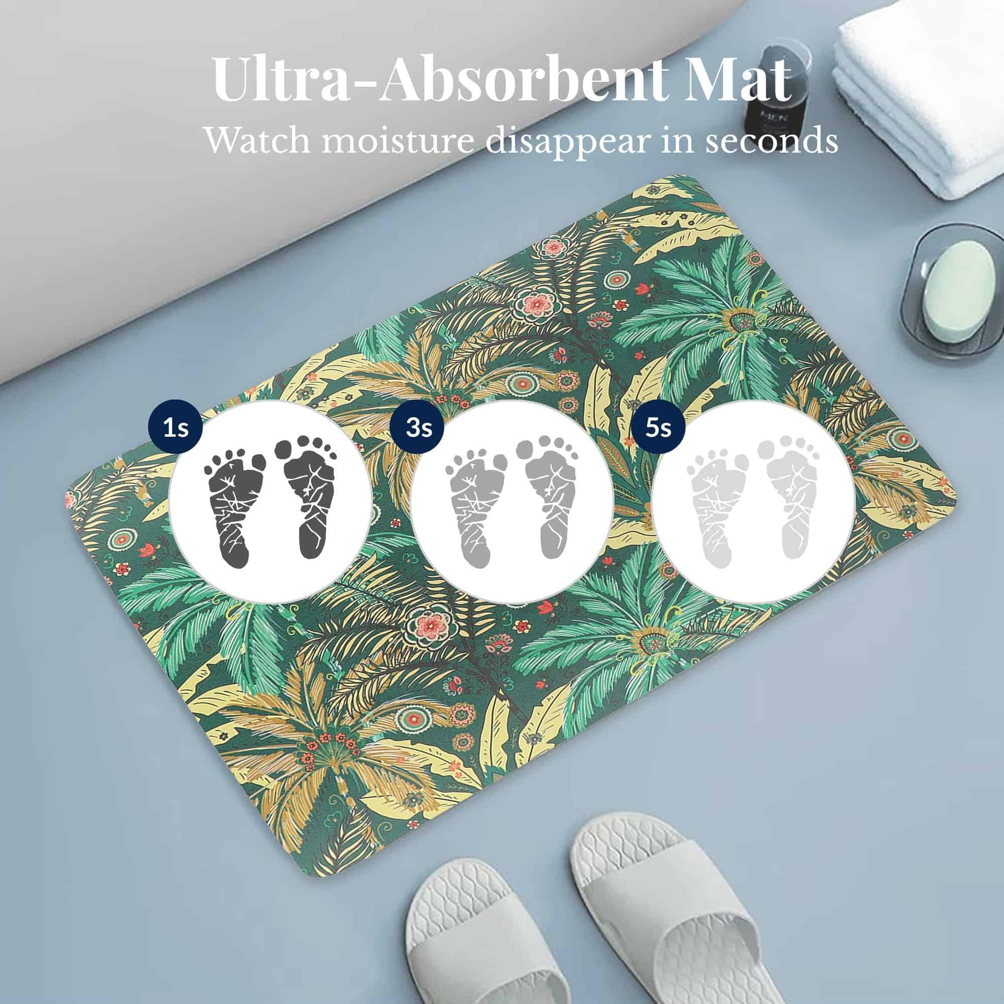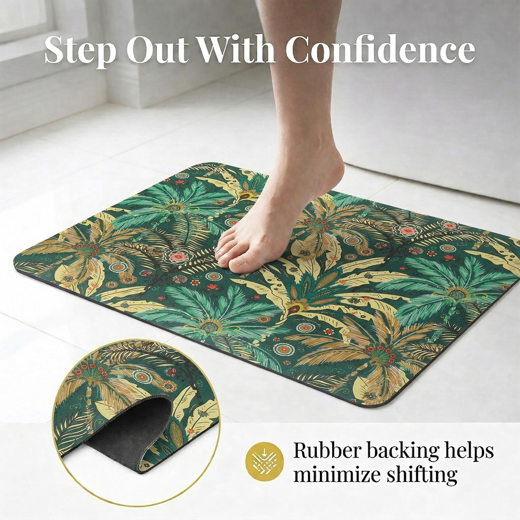 Jungle Bloom Bath Mat 24×18 – Ultra Absorbent Quick Dry Rug with Anti-Slip Rubber Backing