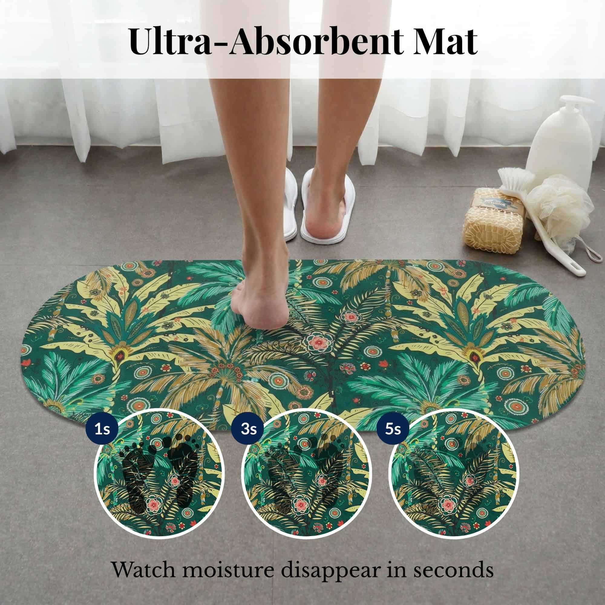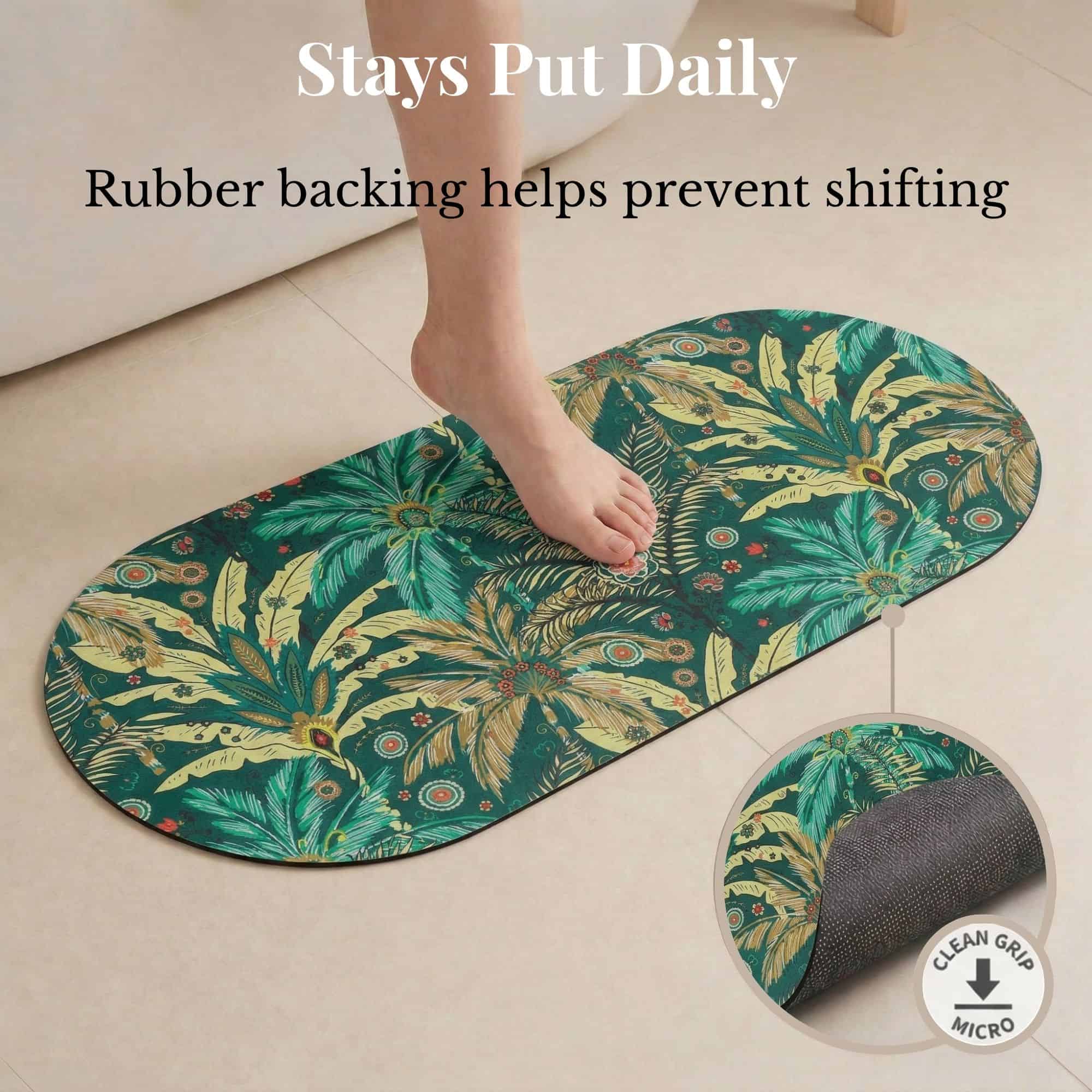 Jungle Bloom Runner Bath Mat 40×18 – Ultra Absorbent Quick Dry Rug with Anti-Slip Rubber Backing