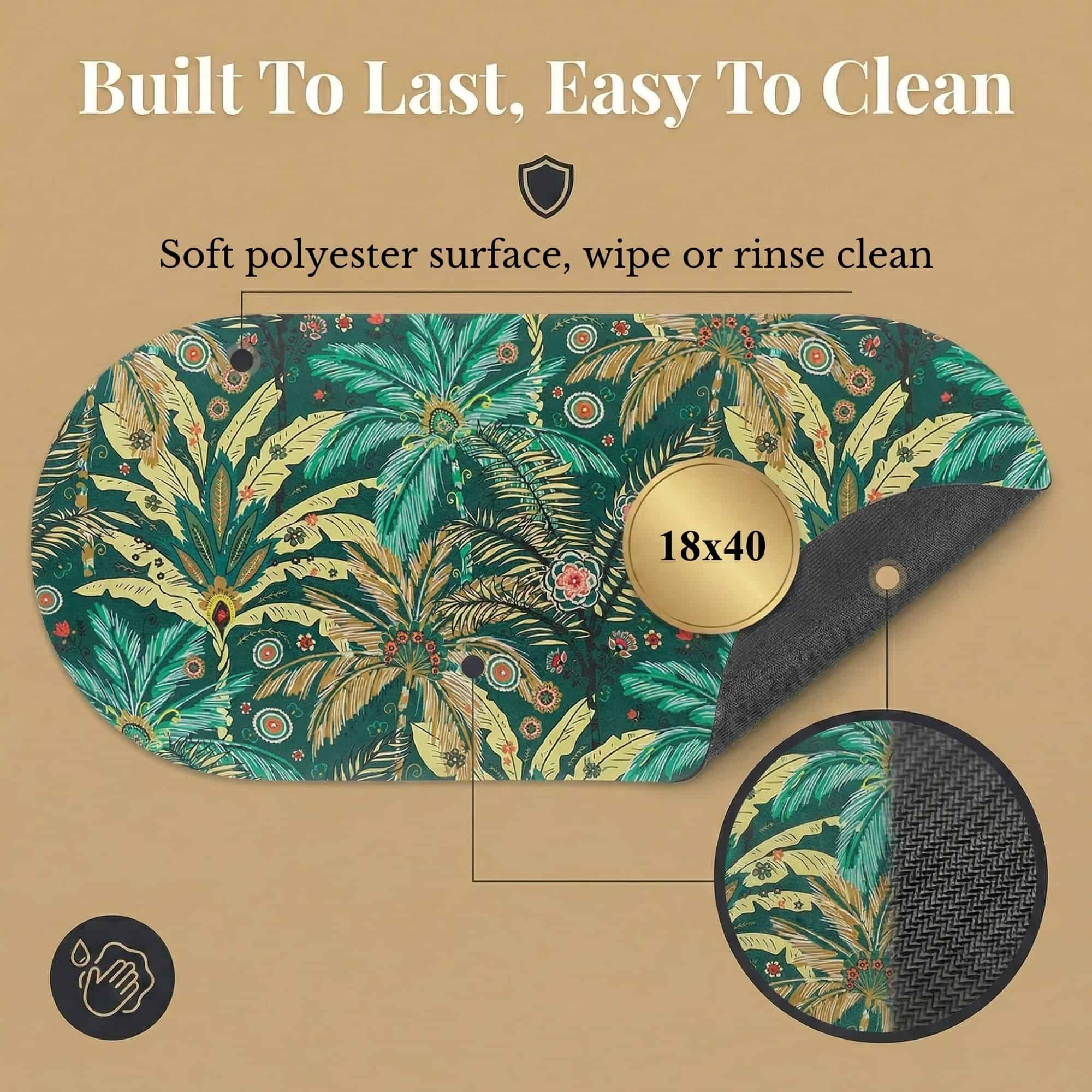 The Jungle Bloom Runner Bath Mat 40×18 Quick-Dry is built to deliver everyday practicality with a design that genuinely elevates your bathroom. Made from durable polyester with a PU-coated surface, it offers long-lasting performance with a polished finish. Its ultra-absorbent surface locks in moisture on contact and dries fast — ideal for high-traffic bathrooms and daily use.
