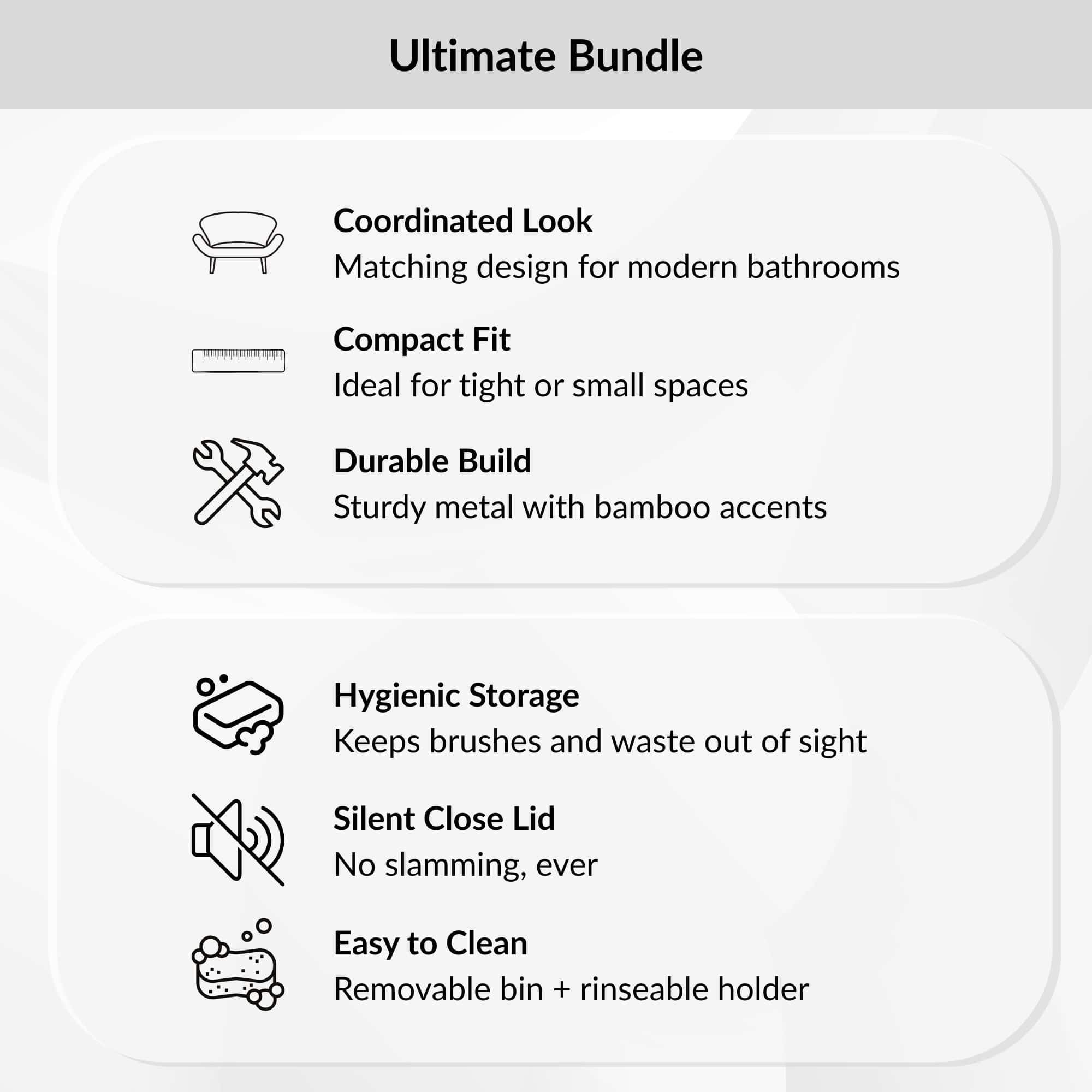 - STURDY BUILD: Crafted from matte-coated metal with bamboo tops and stainless steel accents, these durable bathroom accessories resist wear while adding an elegant touch to any small space