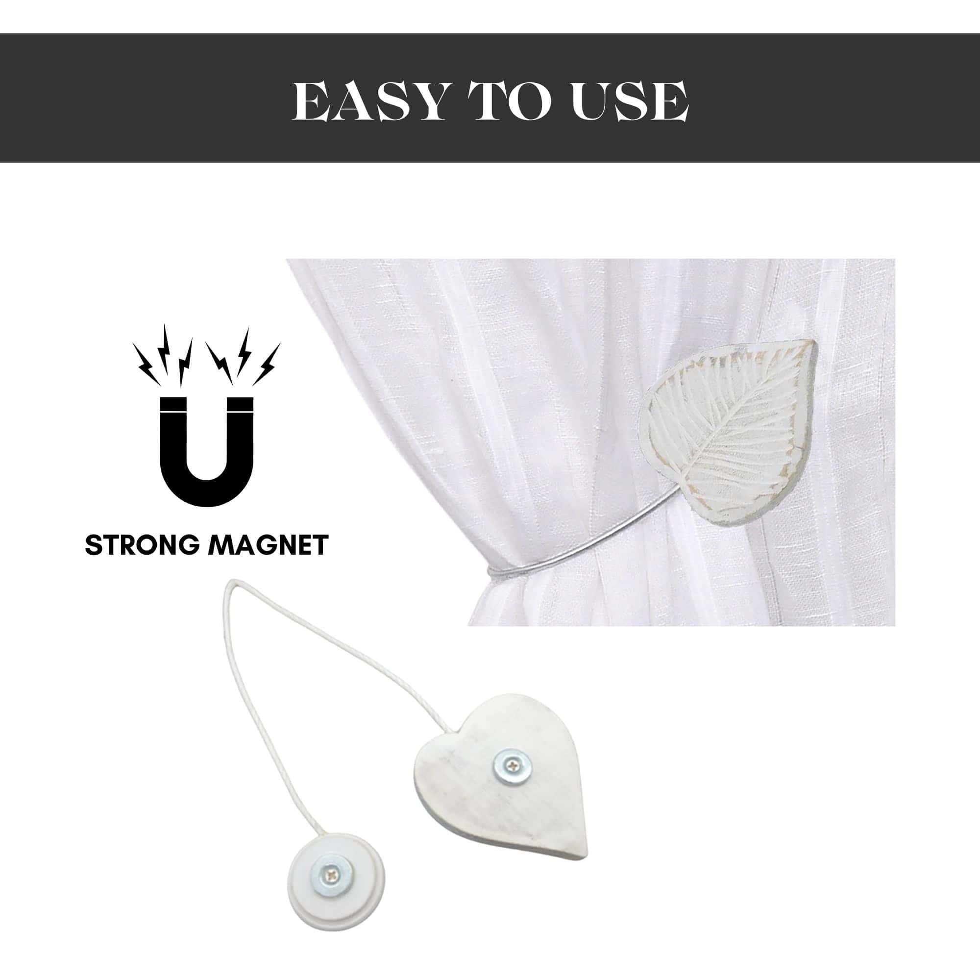 Magnetic Wooden Heart Curtain Tieback – Easy to Use, No Installation Needed – White