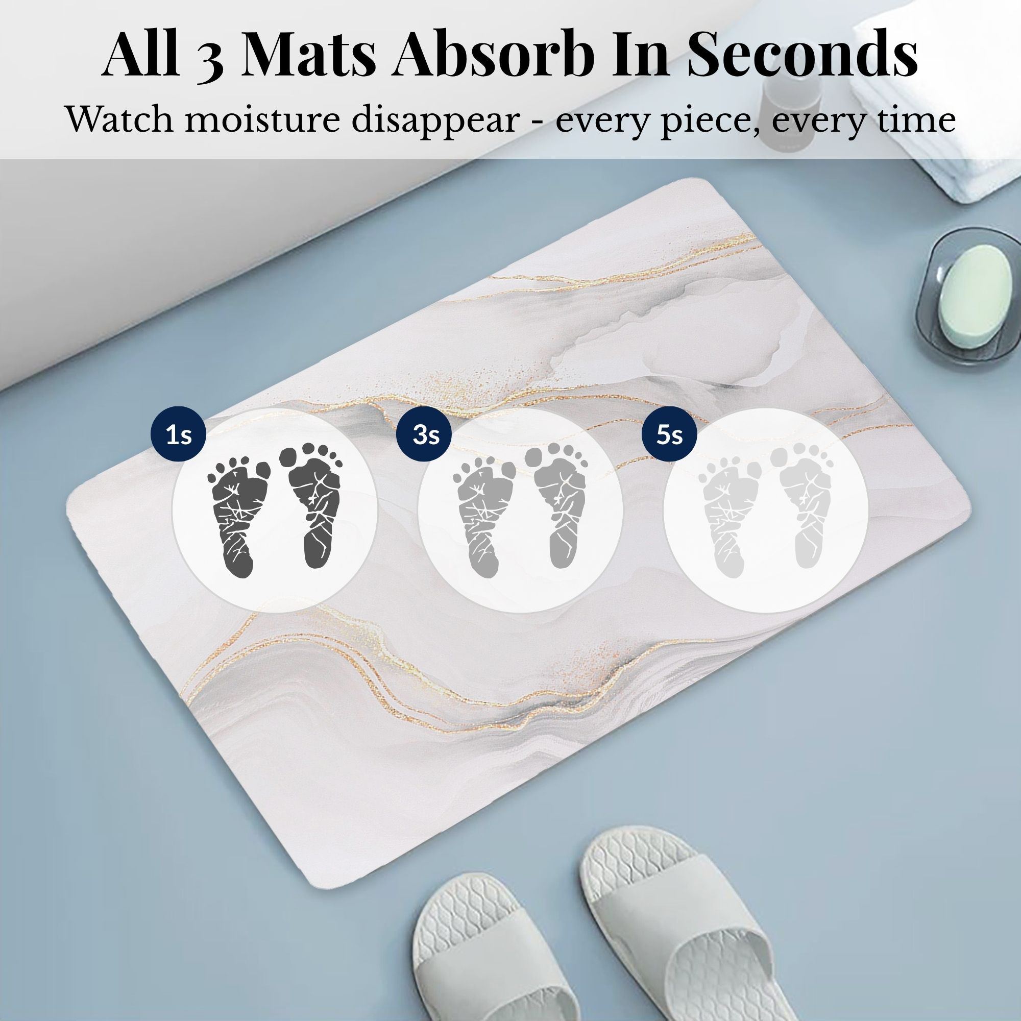 - TRIPLE-ZONE FLOOR PROTECTION: Absorbent polyester in each mat handles moisture at shower exits, bathtub edges, and toilet areas