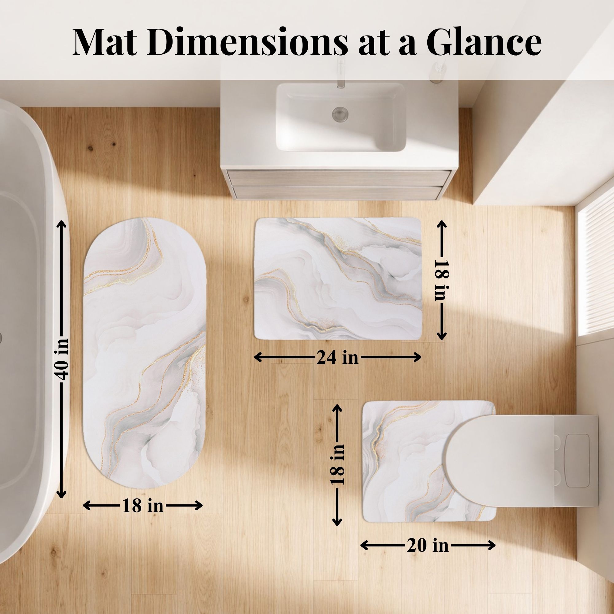 - Standard Bath Mat 24×18 in — for shower exits and vanity areas