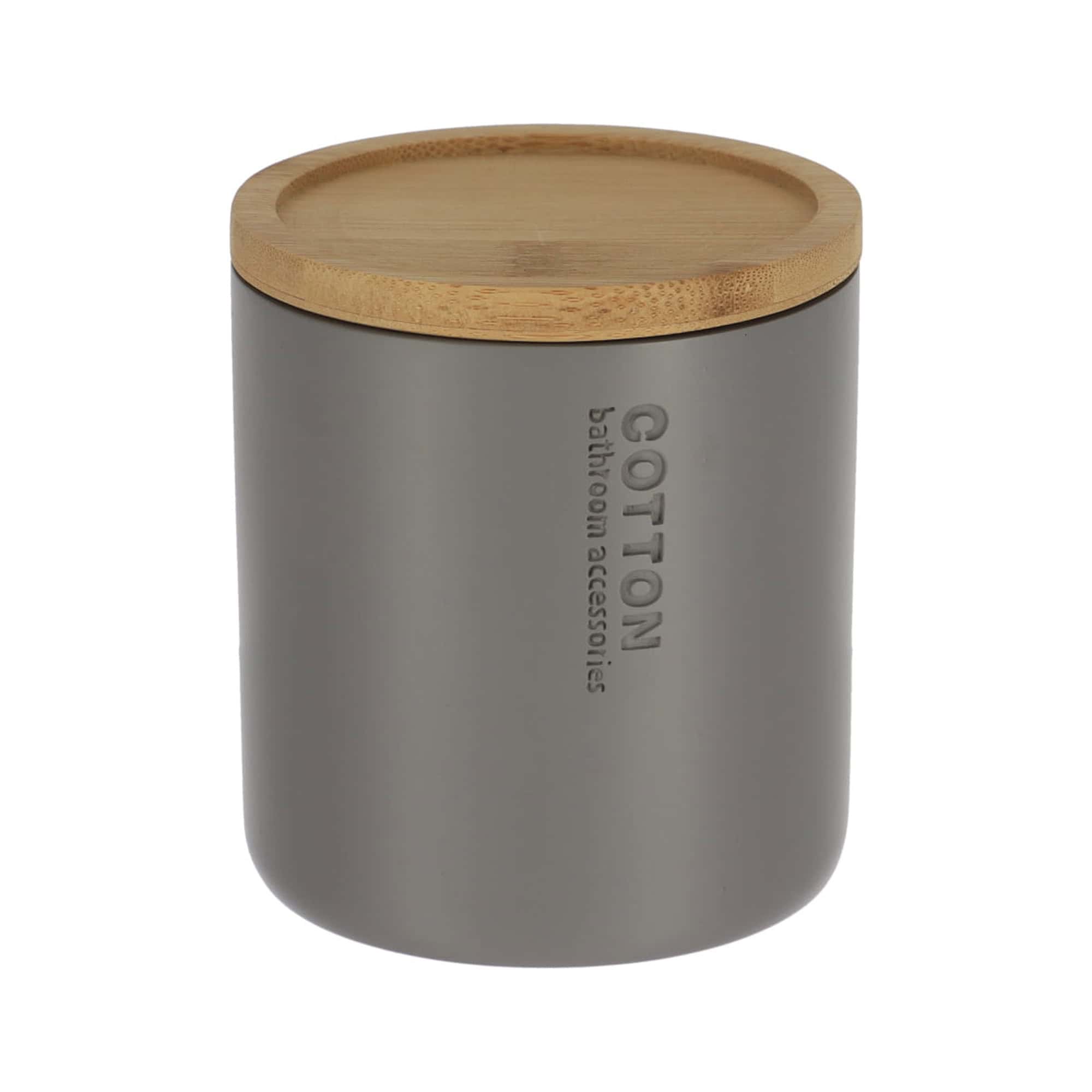 Modern Matte Gray Cotton Pad Jar with Natural Bamboo Lid – Polyresin Bathroom Storage Solution