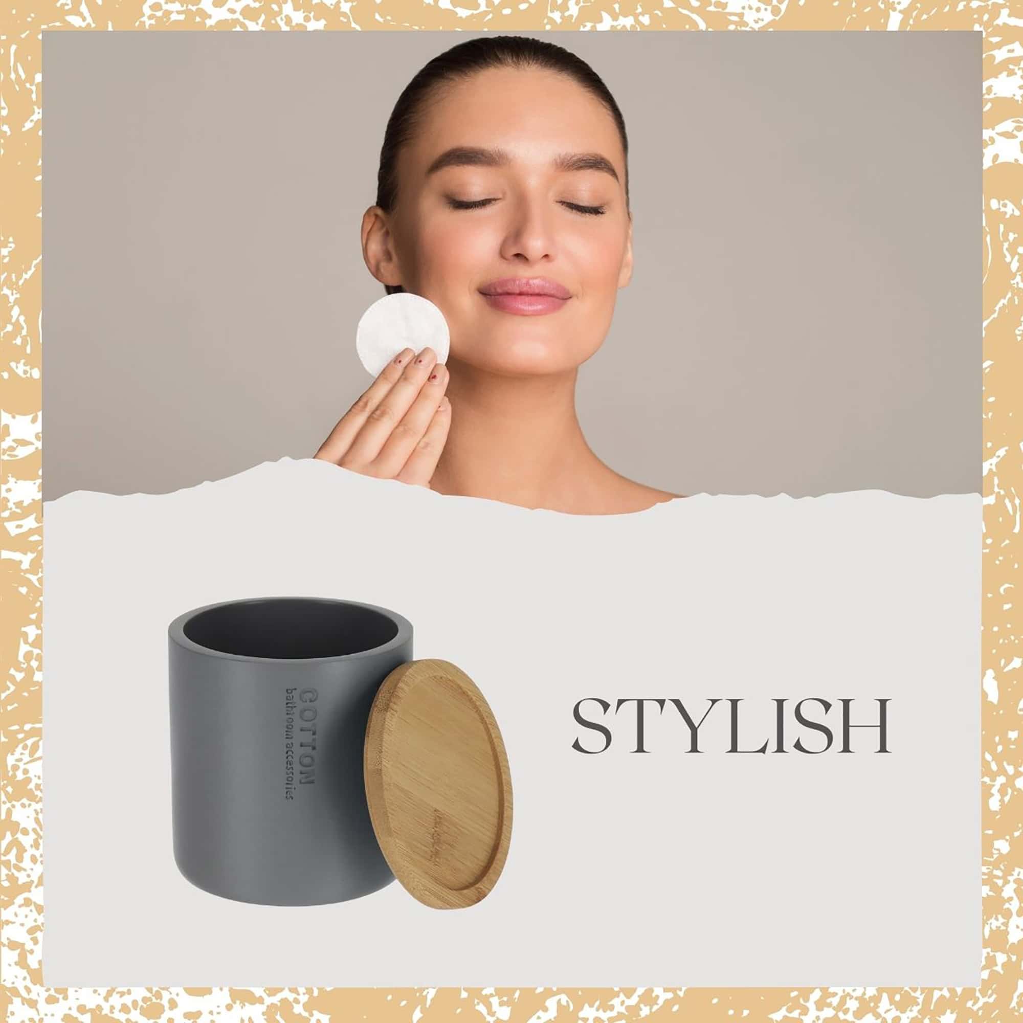 - CONTEMPORARY STYLE: Enhance your bathroom with this gray cotton box, perfect for storing cotton pads or small beauty items