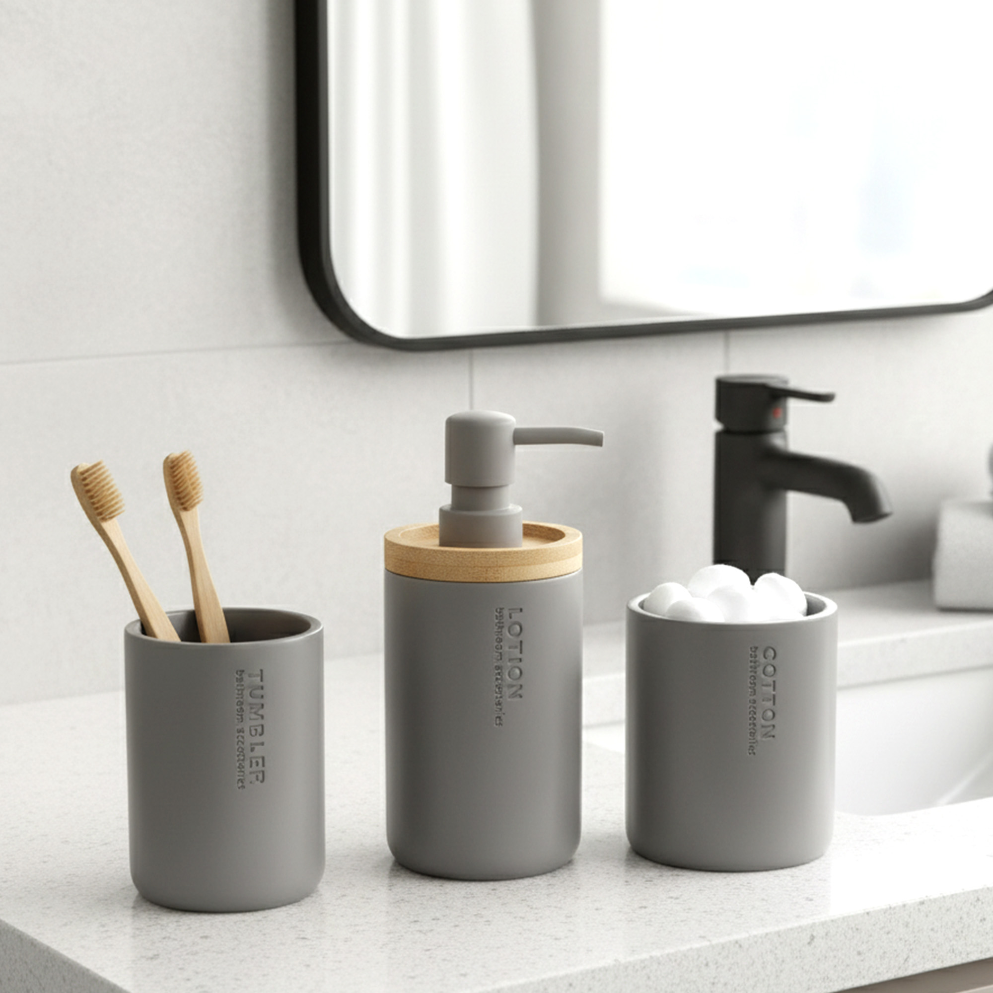 Be the first to review “Modern Matte Gray Soap Dispenser with Natural Bamboo Accent – Polyresin Hand Lotion Pump, Contemporary Bathroom Accessory”