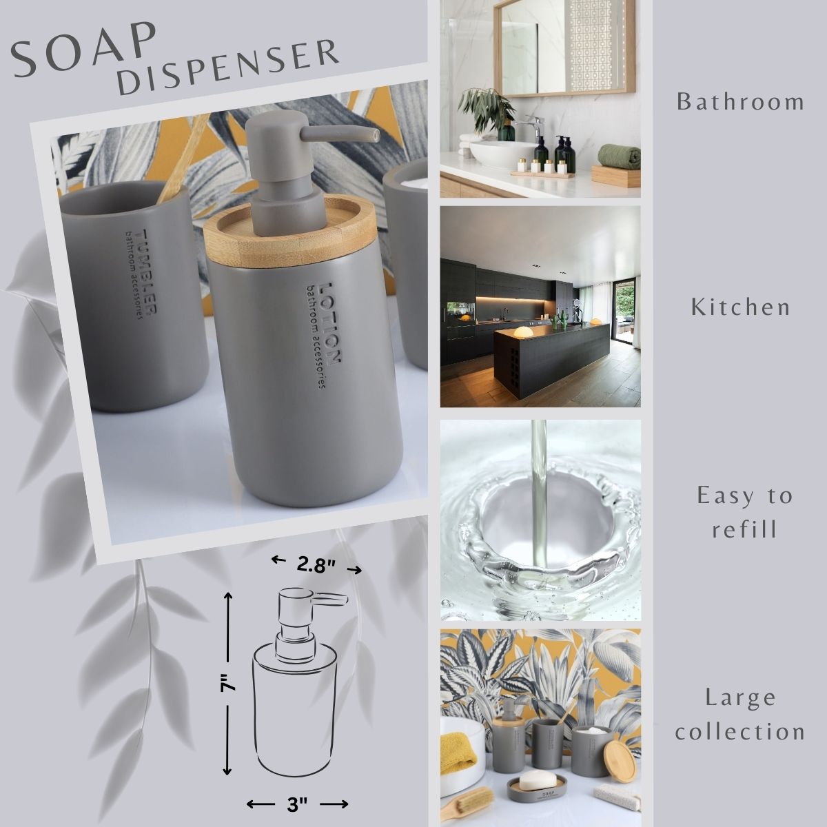 • URBAN CHIC: Our gray soap dispenser with a natural bamboo accent breathes a stylish, urban ambiance into any bathroom