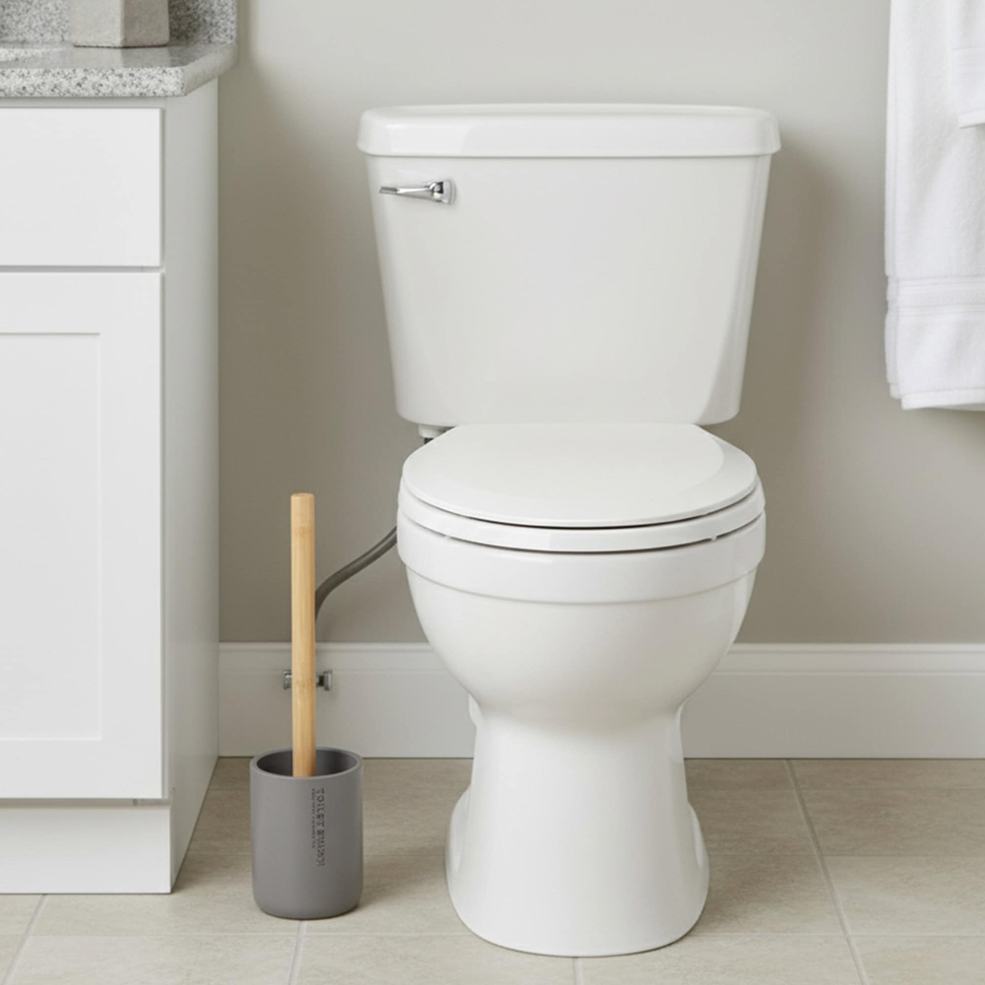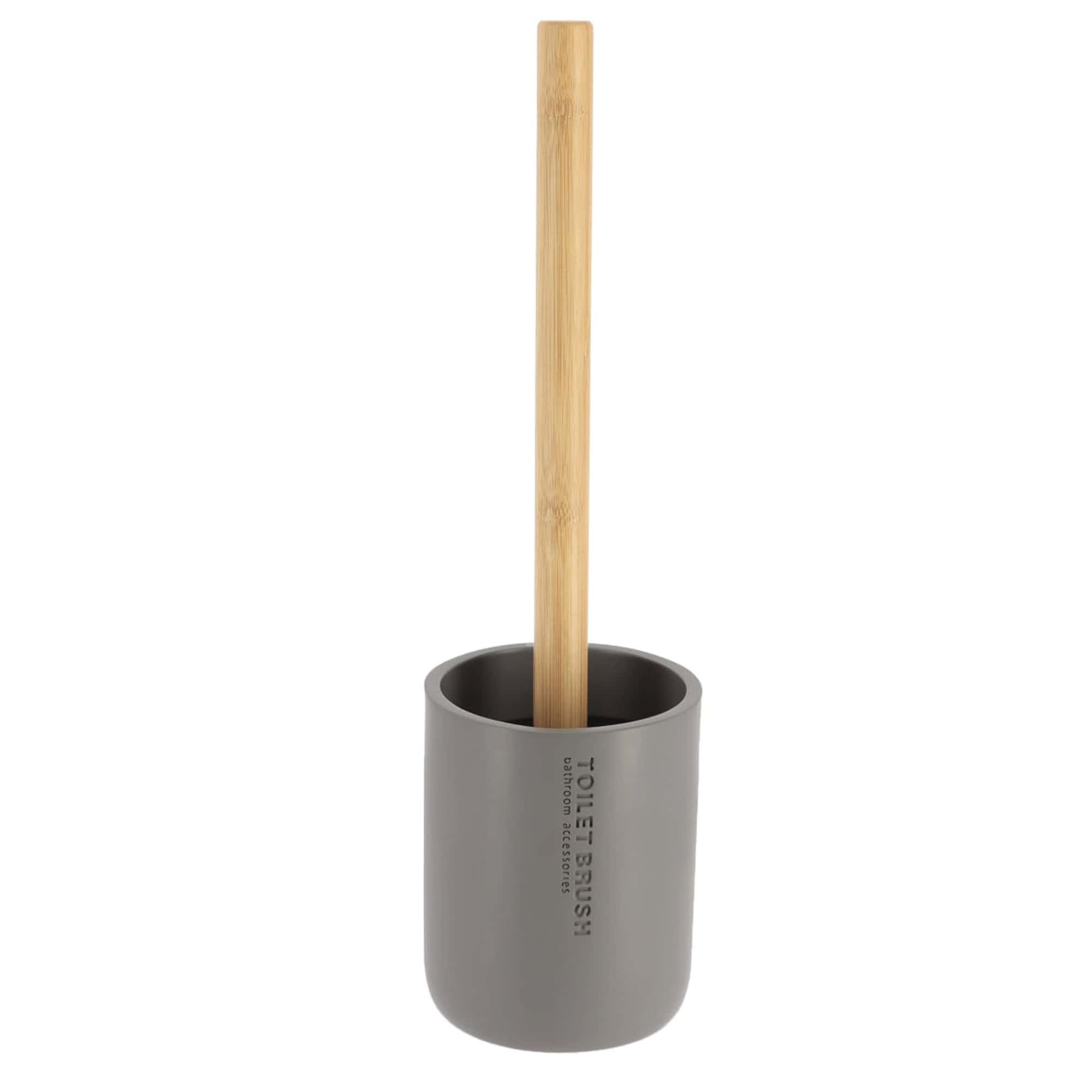 Modern Matte Gray Toilet Brush Set with Natural Bamboo Handle – Polyresin Bathroom Cleaning Accessory