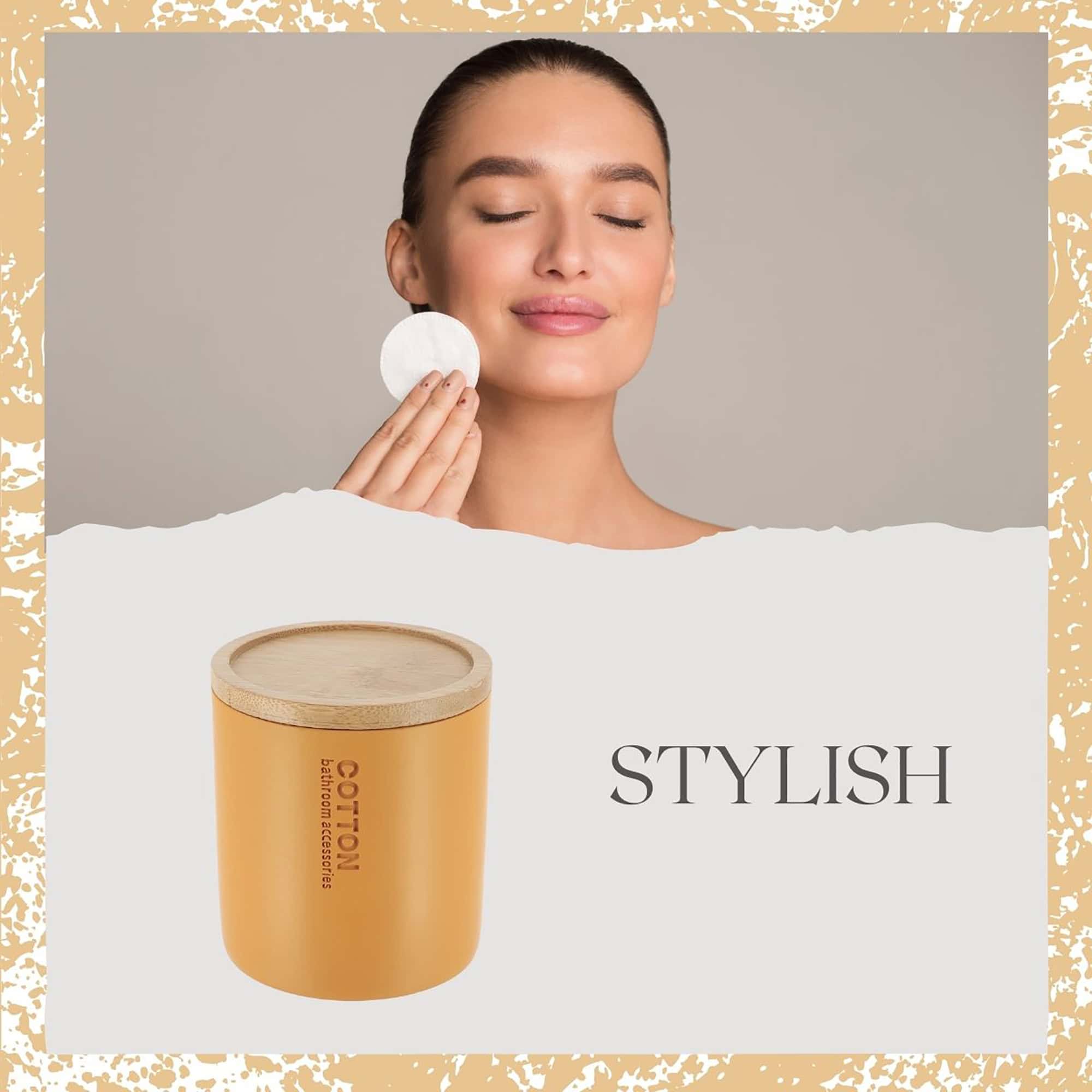 - STYLISH LOOK: The mustard yellow hue of this cotton swab holder brings a warm palette that complements any bathroom decor. Complemented by embossed text reading “COTTON bathroom accessories”