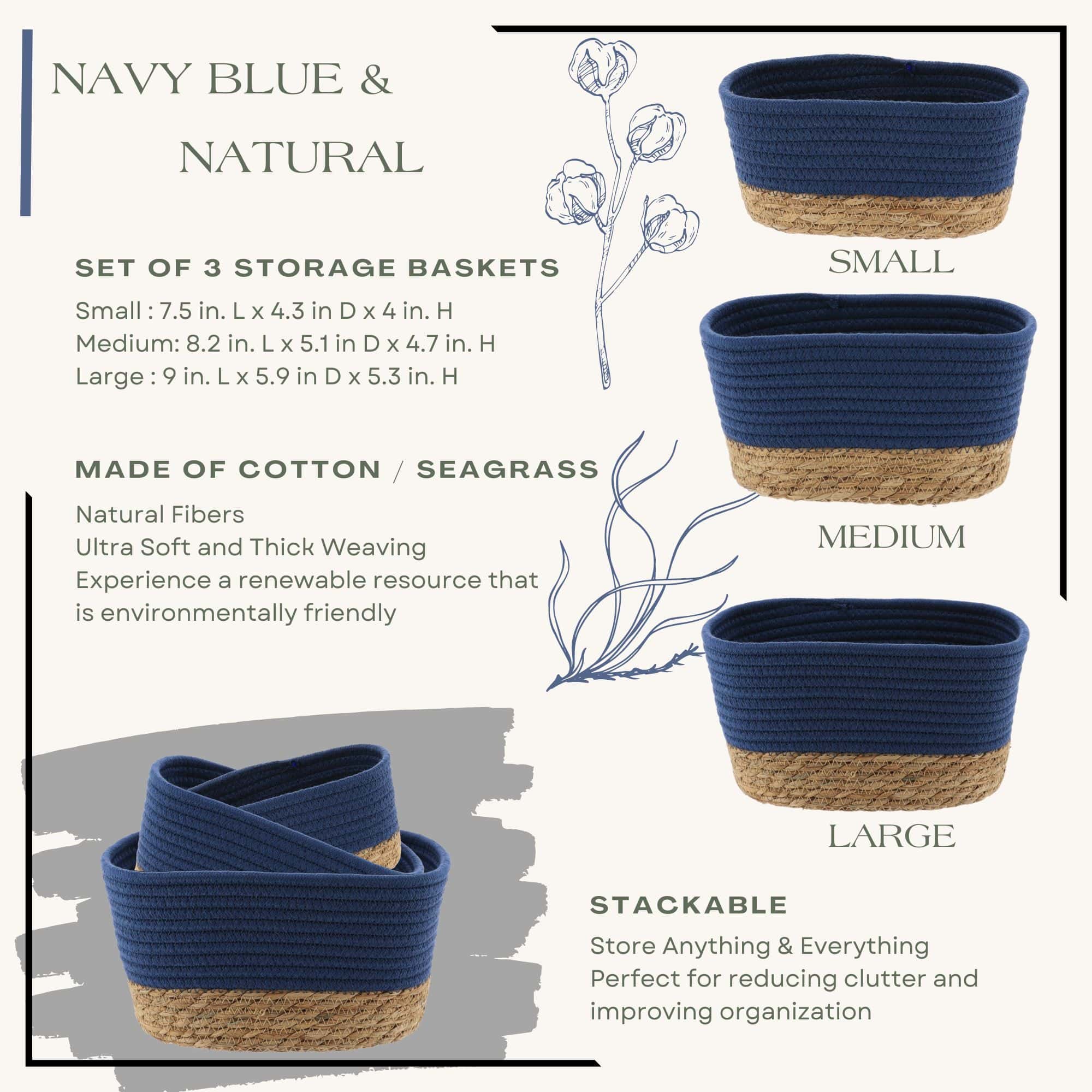 - NAUTICAL NAVY ALLURE: The combination of navy blue cotton and seagrass guarantees lasting durability, infusing your space with a touch of timeless beauty, and perfectly catering to your stylish home organization needs