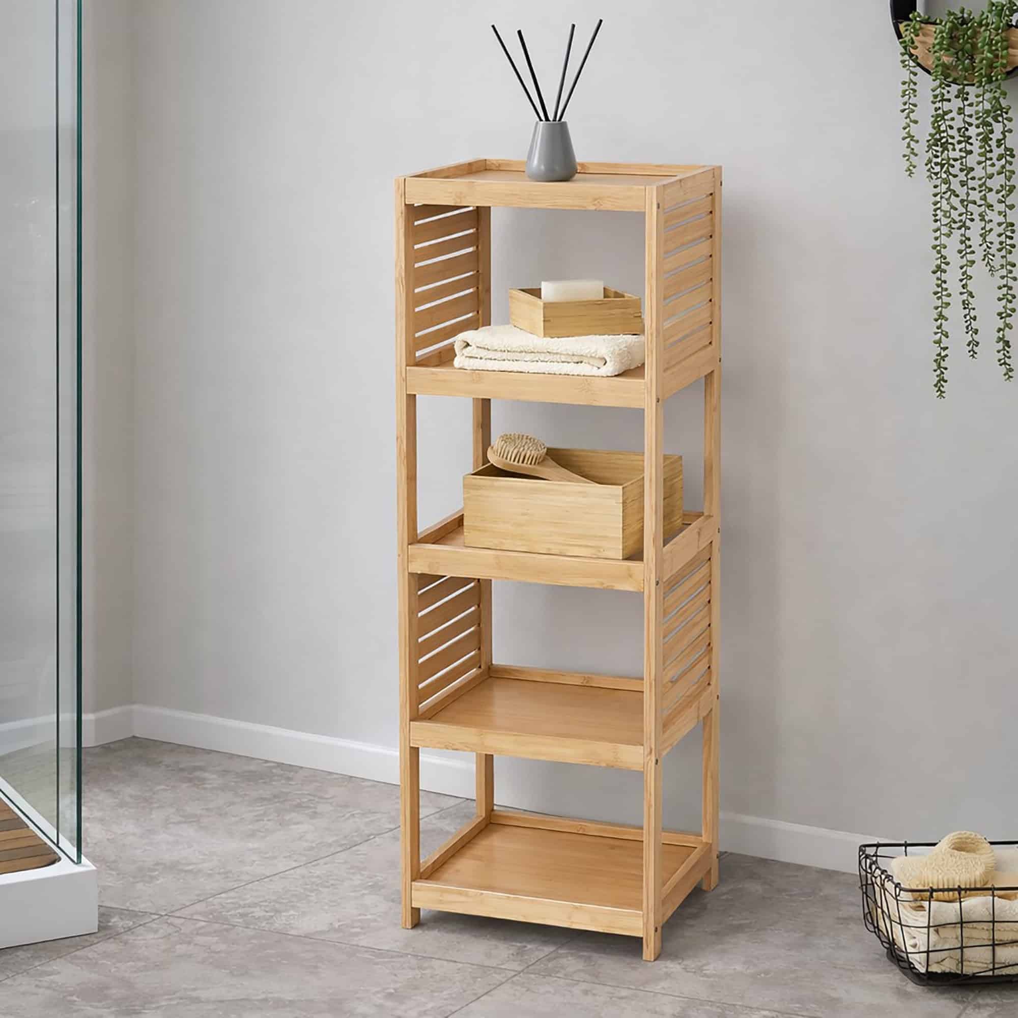 - OPEN-SHELF ORGANIZATION: This small unit features multiple shelves, providing easy access to essentials like towels, toiletries or kitchen supplies