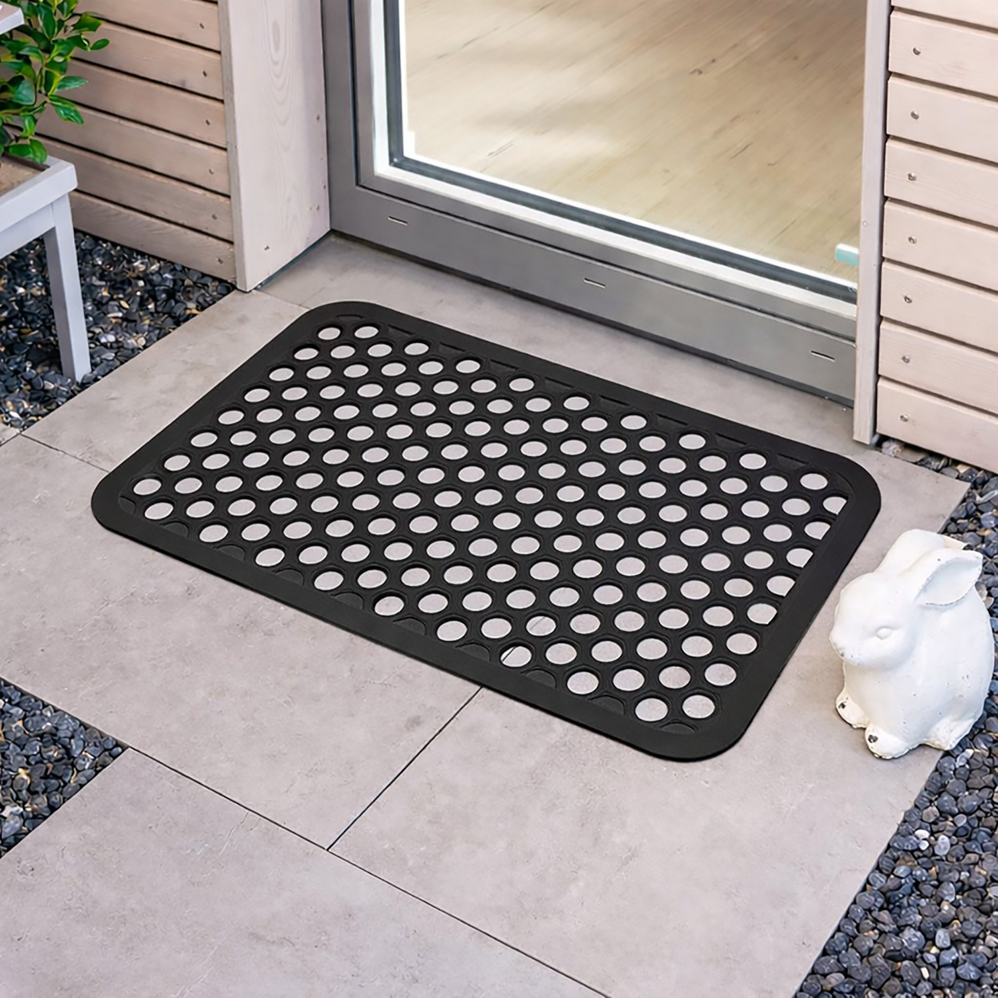 Outdoor Front Door Mat Harold Railing Rubber Rug 24×16 Black