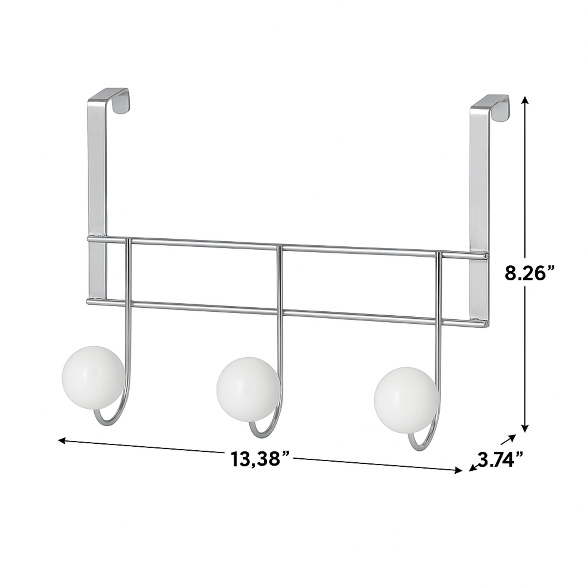 - Add storage easily to any bathroom, closet or room door in your home, color chrome with white hanging balls