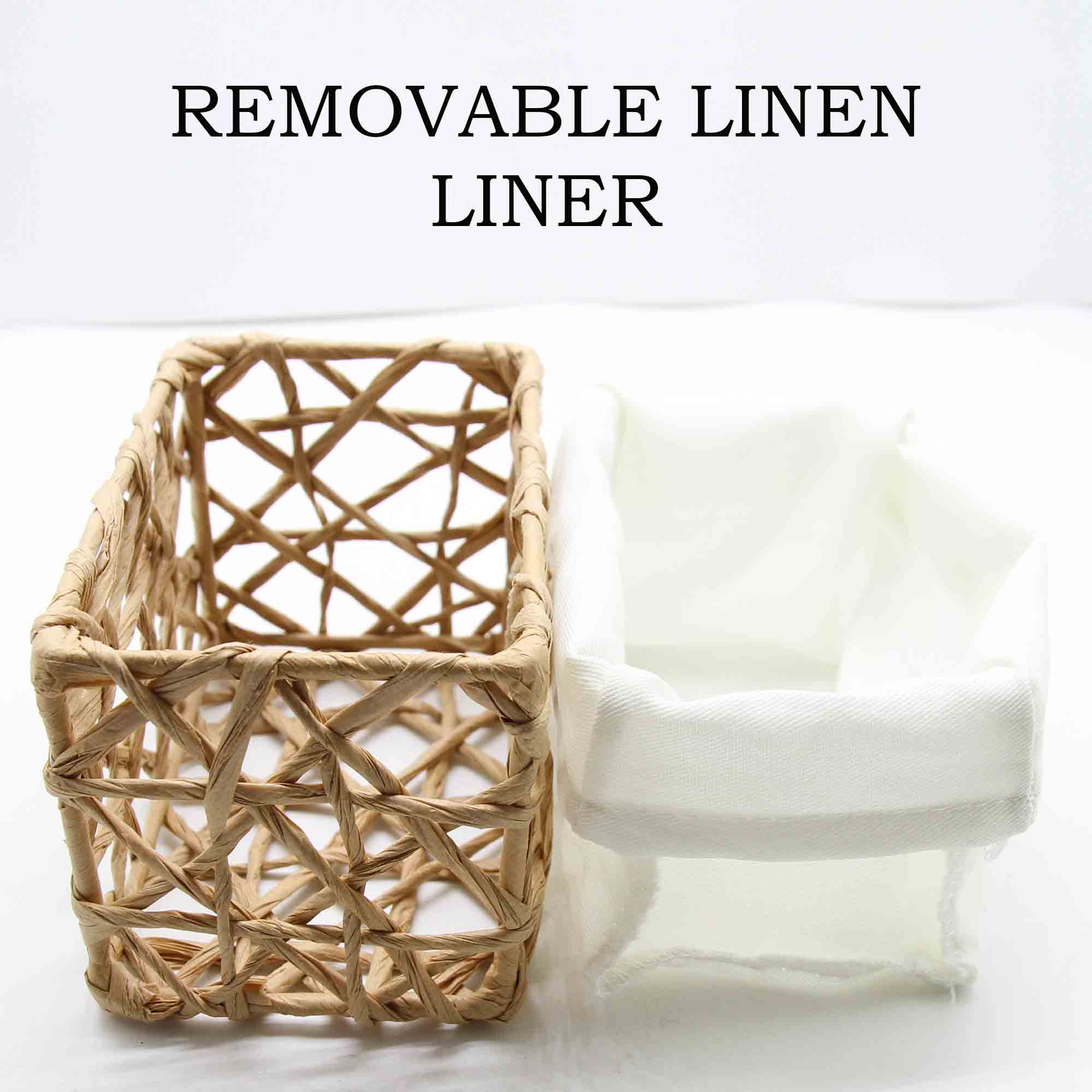 - 4-PIECE WOVEN BASKETS: Perfect for lightweight storage while keeping household items tidy and organized.This set includes 4 different sizes,all made of durable paper rope with stainless steel tube frame to maintain shape, with a removable linen liner