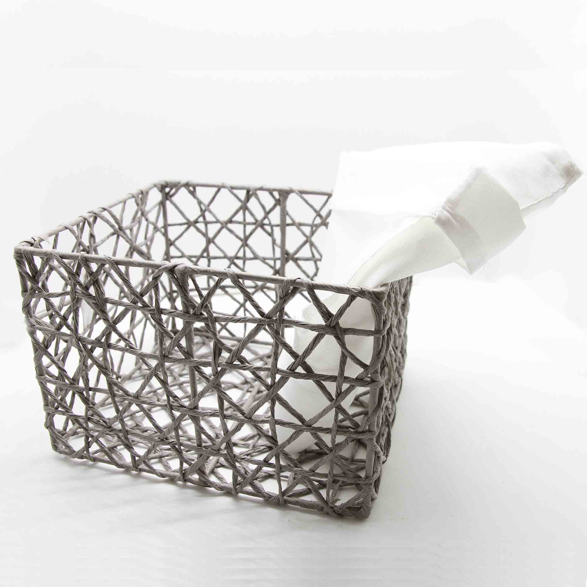 - EASY STORAGE: These 4 baskets are great for paperbacks, toys, crafts, seasonal holiday ornaments, cosmetics, bath/spa toiletries.They hold either travel sized items, Q-tips, cotton balls, mail, accessories, office supplies, socks, ties, and much more